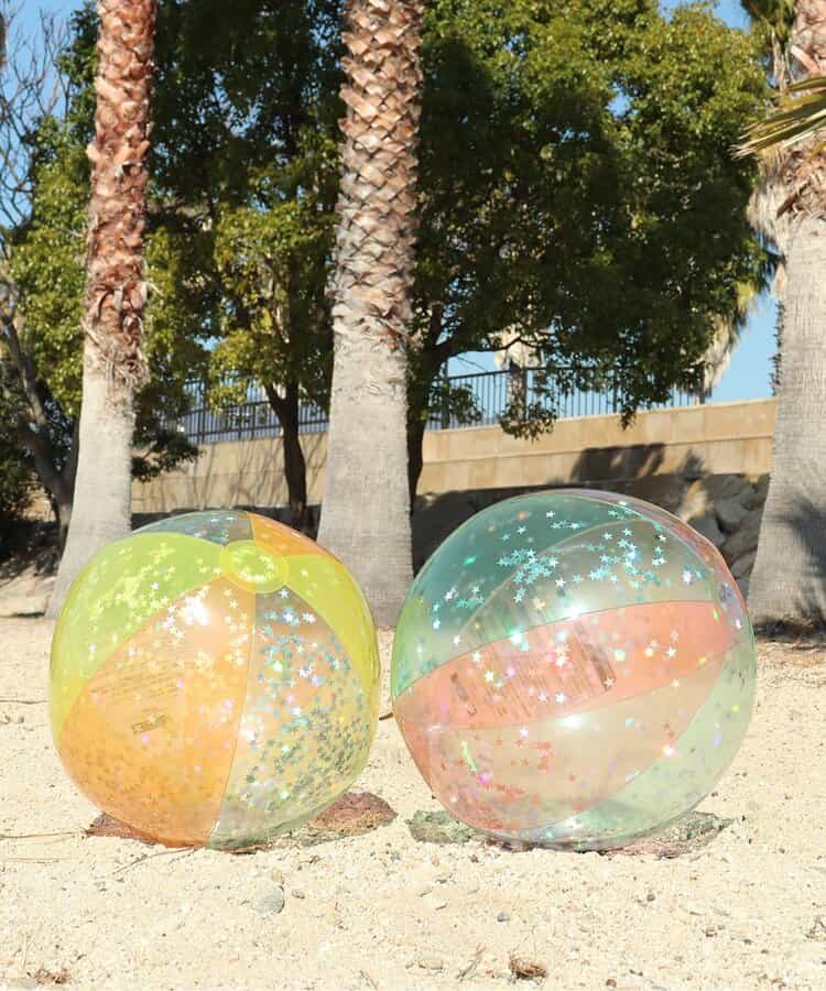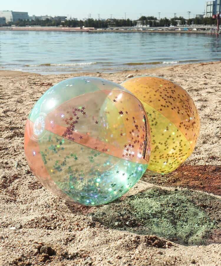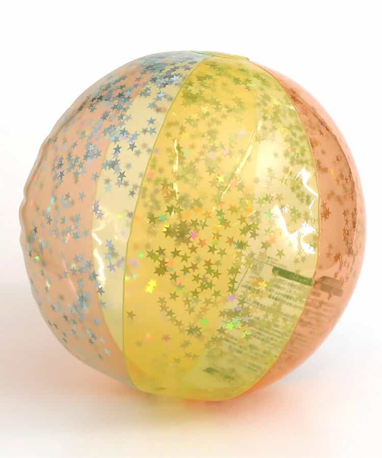 透明感とキラキラのラメが可愛いビーチボール♪サイズは少し大きめで直径50cm◎飛び跳ねるとラメに光が反射してとってもきれい☆カラーはイエロー・ピンクの2色展開でリングフロート/アームフロートとお揃いカラー◎リングフロートはこちら! >>アームフロートはこちら! >>※こちらの商品は返品不可商品です。※生産過程で色やラメがパッケージ写真とは多少異なる場合がございます。予めご了承ください。【使用上の注意】●本品は浮き具やフロート代わりとして、 水上では使用しないでください。●子どもの一人遊びは危険です。必ず保護者のもとで遊ばせてください。●風の強い時は、使用しないでください。風や波に流されやすく危険です。●ラメが空気栓からでることがございます。 対象年齢未満のお子様には絶対に与えないでください。 ●空気を入れる際には誤飲の恐れがあるため、空気入れを使用してください。●空気の入れ過ぎは破損の原因になります。外周部にシワが少し残るくらいが適量です。●炎天下に置くと、本体が柔らかくなる場合がありますが、空気の追加注入はひかえるか、少量にしてください。● 空気栓は、線と弁の二重構造になっていますが、弁は空気の急適なもれを防ぐ補助弁で、 空気を完全に止めるものではありません。必ず栓をしっかり差し込んでご使用ください。 ●空気注入後は、栓をしっかりと差し込み、更に本体内部に強く押し込んでご使用ください。栓がきつい時は少しぬらして差し込んでください。(禁止事項)(1)岩角やくい、砂利、貝殻、ガラス片、金属片、木片などとがったものとの接触(2)タバコや火気に近づけること。(3)高圧ポンプなどの使用安全耐久検査実施済材質検査実施済