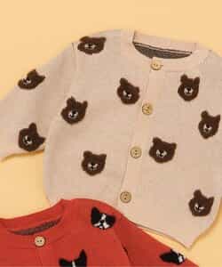 BREEZE(ブリーズ)のカーディガン・ボレロ「Bpop どうぶつジャガードカーデ」は、手頃な価格と着回ししやすいデザインが人気!体温調整にもコーディネートにも、1枚あると便利なアイテムです。