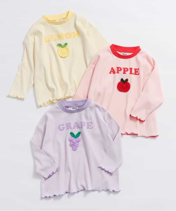 【8/19(火)21:00~販売】BREEZE(ブリーズ)の長袖Tシャツ「フルーツぷっくりロンT」は、手頃な価格と豊富なバリエーションが人気!通園・通学にも使えるデザインが多く、着回し力抜群です!