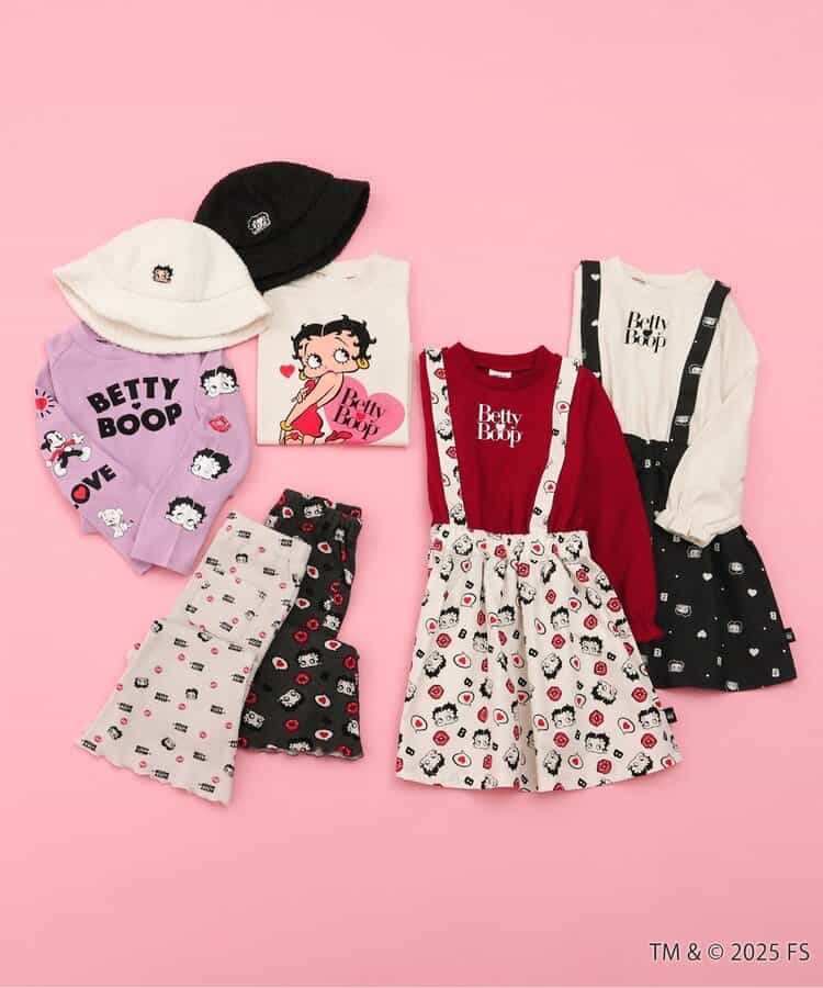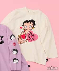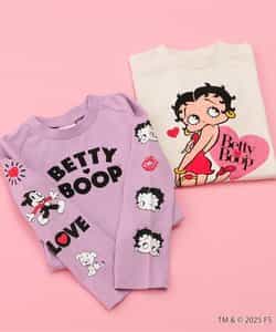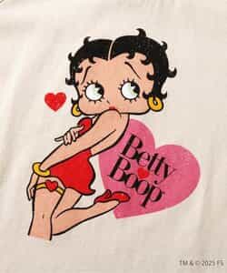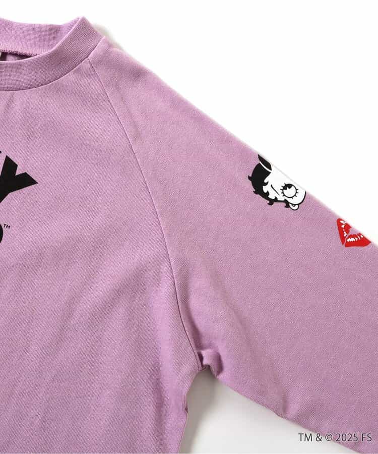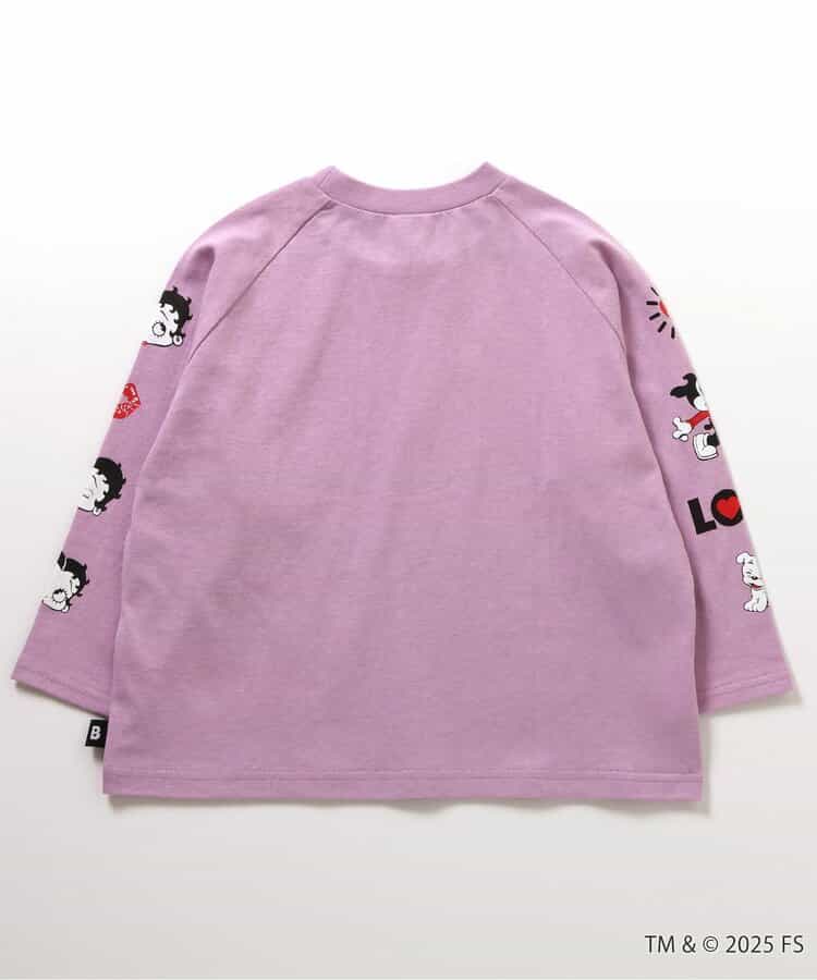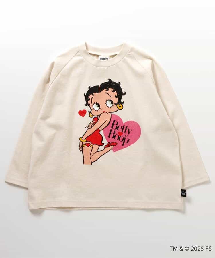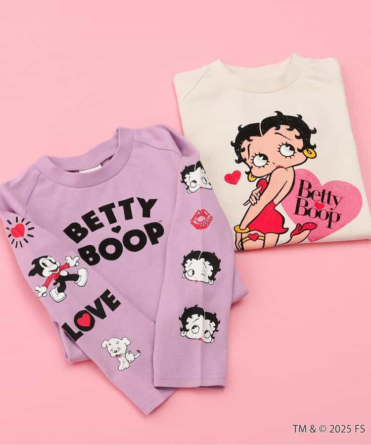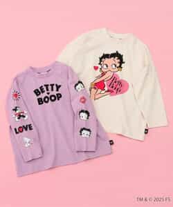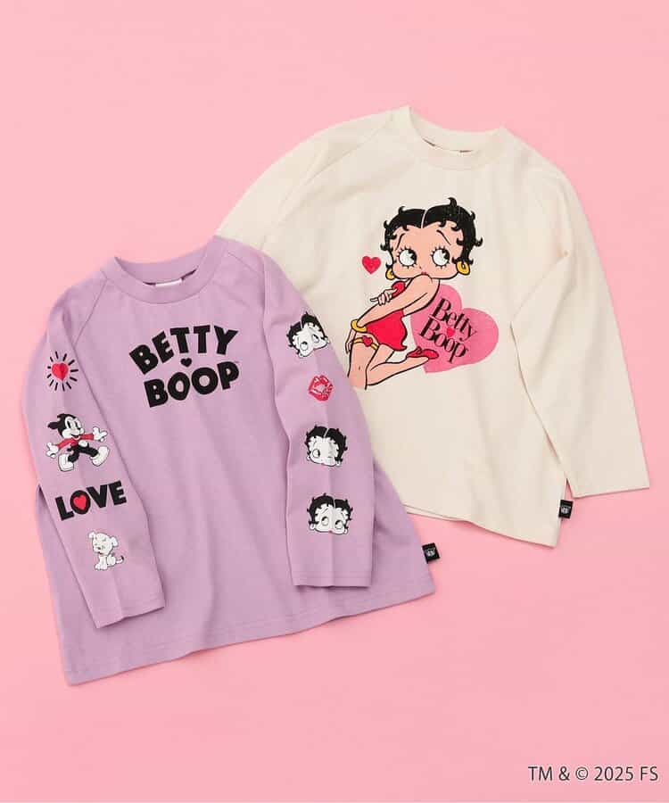 【9/5(金)お昼12時~販売】 【Betty Boop™】 ベティーちゃん好きにはたまらない♪女の子にぴったりのキュートなロンTが登場! オフホワイトはフロントに大きく描かれたベティーちゃんのイラストが目を惹くデザイン。ピンクは袖部分にベティちゃんがデザインされていて、動くたびにかわいさ倍増♪ 1枚でパッと華やぐ主役トップス♪おしゃれが大好きなキッズにぴったり! コーディネートのポイントになる存在感抜群のアイテム。 デイリー使いはもちろん、ちょっとしたお出かけにもおすすめです♪