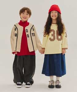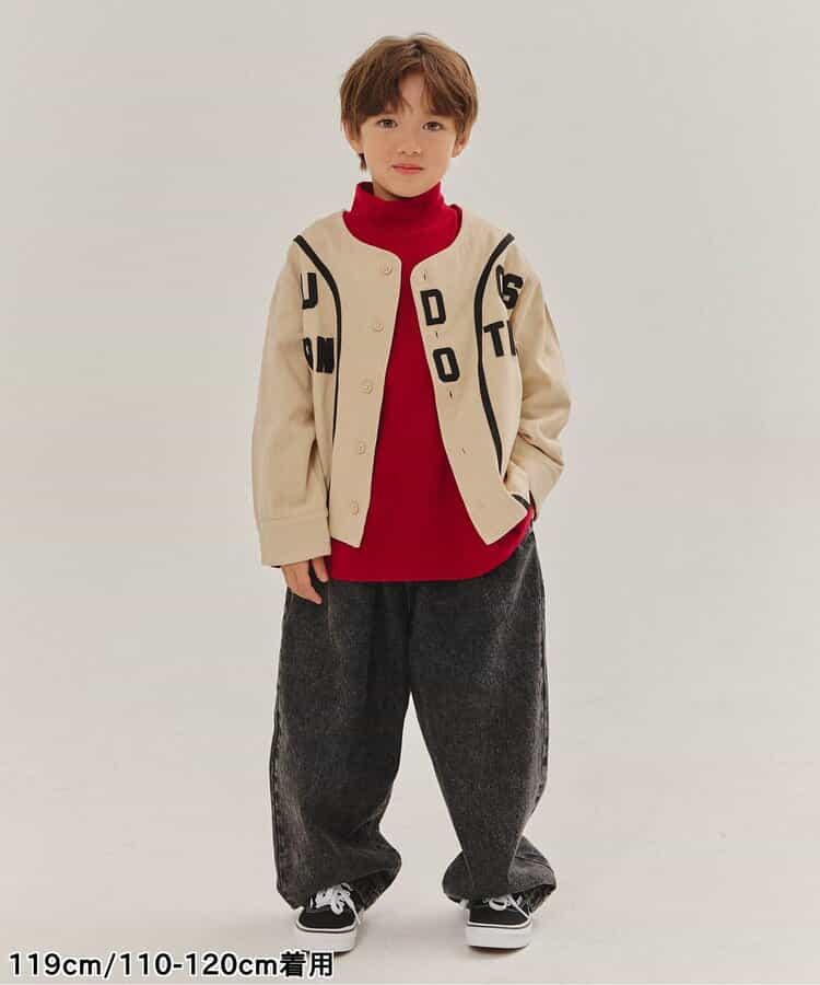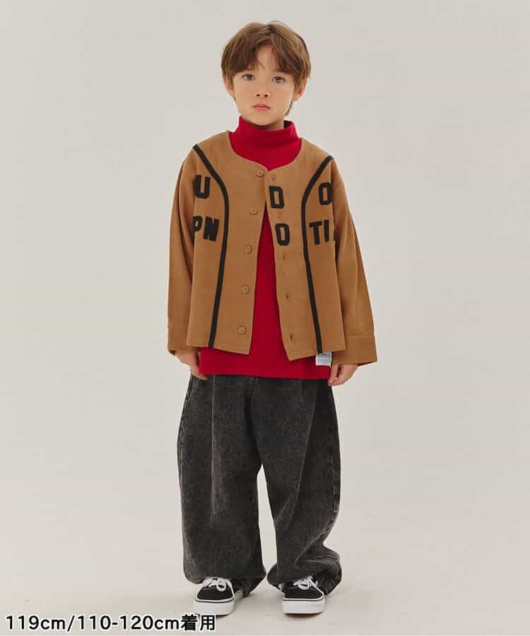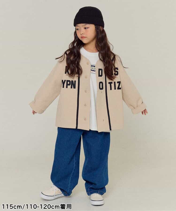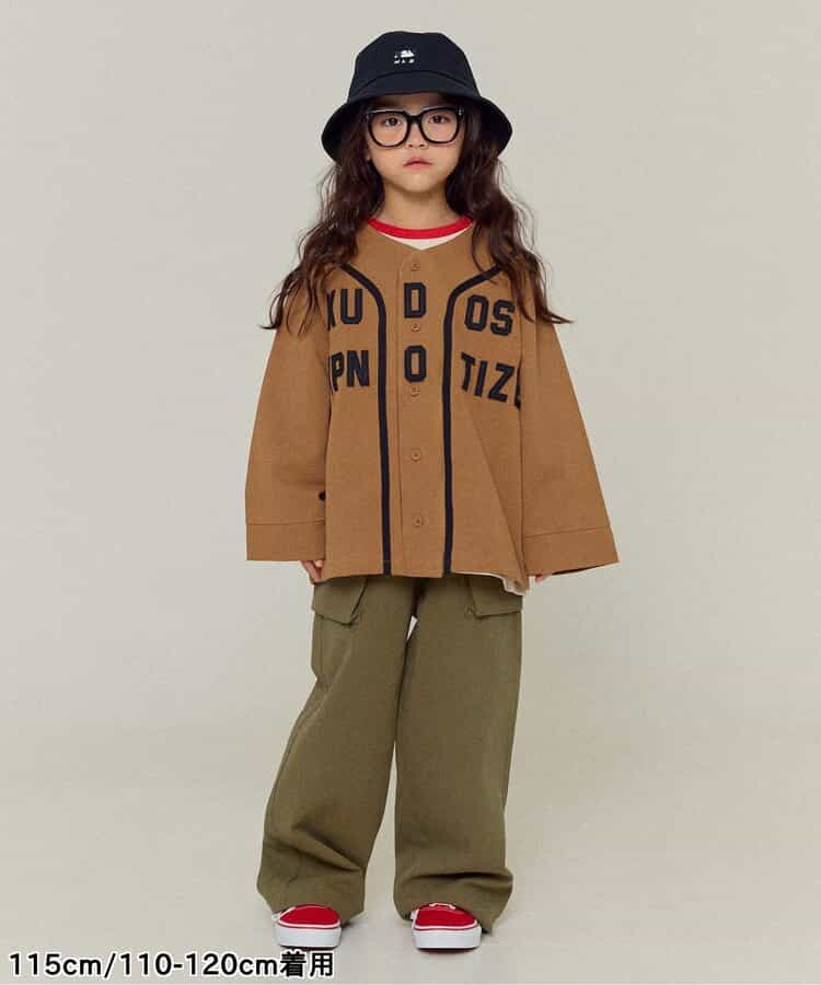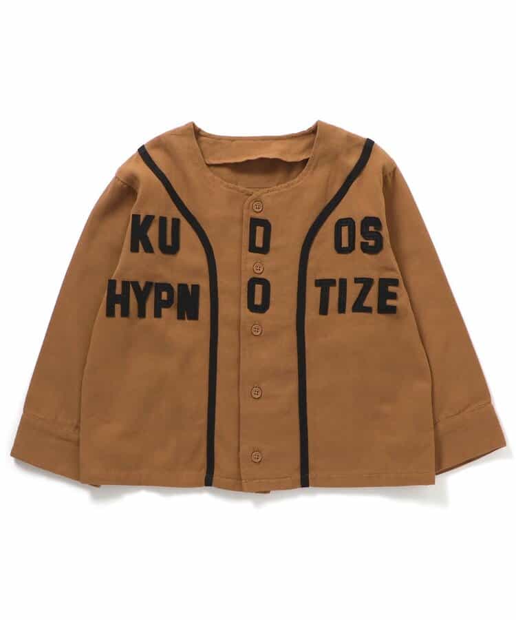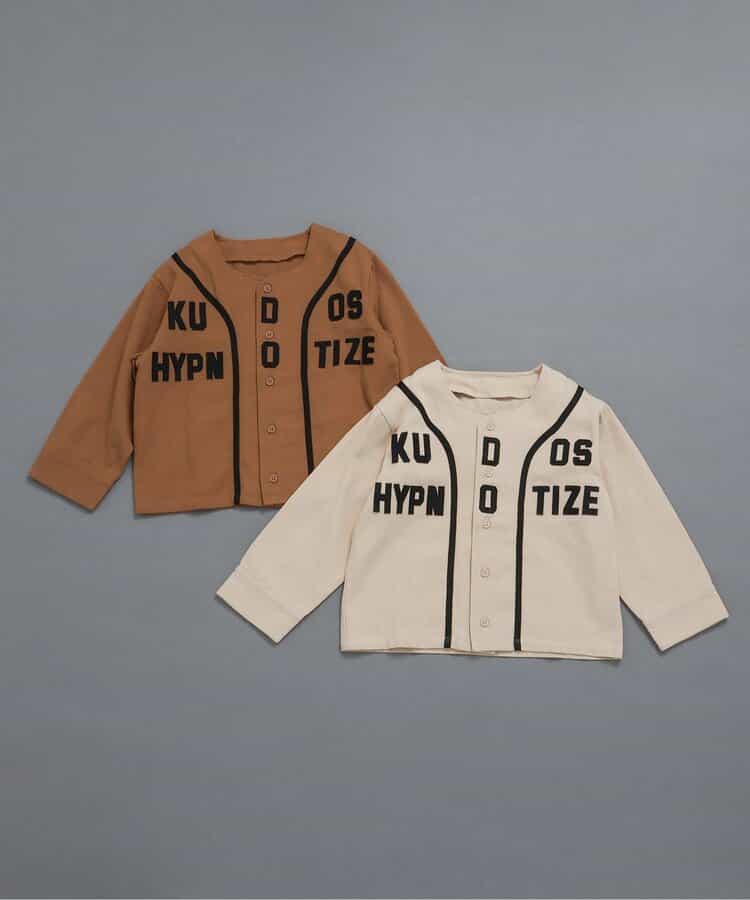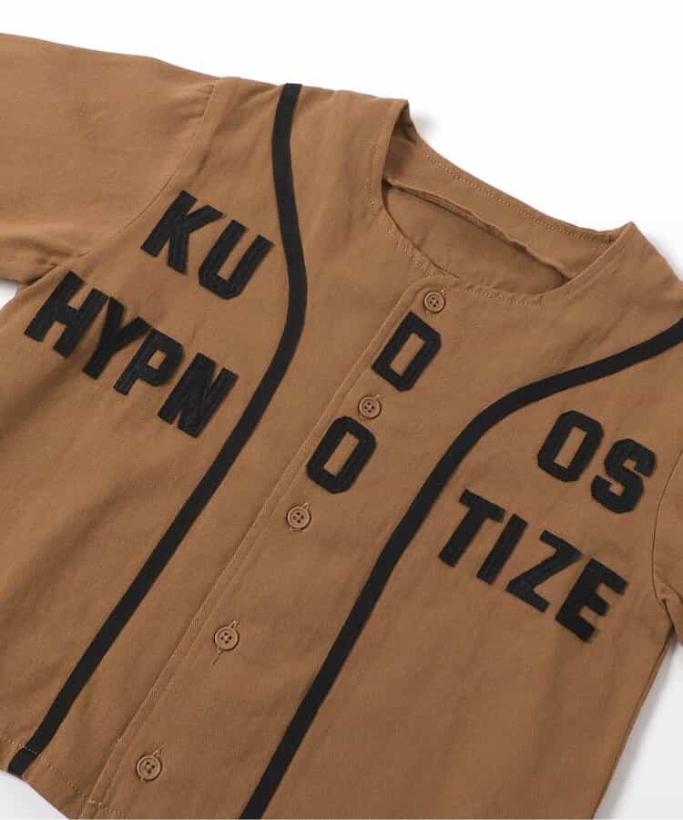 軽く羽織れるベースボールシャツ。 前身頃のロゴがポイントで、閉めても開けてもかわいいデザイン。 袖口は少し広がったシルエットで、動きやすさも抜群。 ユニセックスで着られるから、兄弟姉妹やお友だちとシェアも◎ シンプルコーデのアクセントとしてもおすすめです。