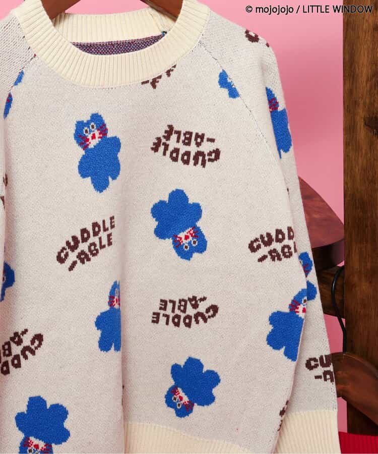 【10/17(金) お昼12:00~販売】 【mojojojo】 ぬいぐるみ作家、尾崎歩美さんがつくる“のほほ~ん”としたおとぼけな表情が愛くるしいmojojojo(モジョジョジョ)とのコラボレーション♪ イラスト化したTodd Friends(トッド フレンズ)とロゴを組み合わせた総柄パターンをジャガードニットで表現しました◎ 色違いでおそろいもかわいいニット。秋冬コーデにぜひ取り入れて♪【mojojojo】コレクションアイテムはこちら>><お取り扱いのご注意>この商品は着用中の摩擦や洗濯により毛羽の乱れ、毛羽脱落、毛玉が生じることが有ります。できるだけ美しくご利用頂く為に次のことにご留意下さい。○毛玉は毛玉取り器またはハサミで丁寧にカットして下さい。○毛羽が他に付着した際はテープやブラシで除去して下さい。○他の製品とは洗わず、単独でお洗濯して下さい。○タンブル乾燥はお避け下さい。