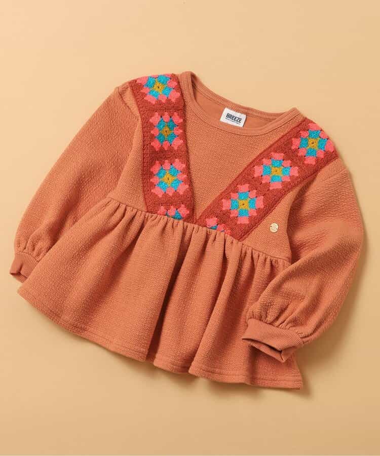 BREEZE(ブリーズ)のシャツ・ブラウス「クロシェモチーフチュニック」は、お出かけにも普段使いにも着まわせるデザインが人気!色や柄、シルエットでかわいさを引き出します♪