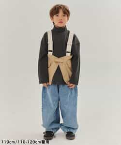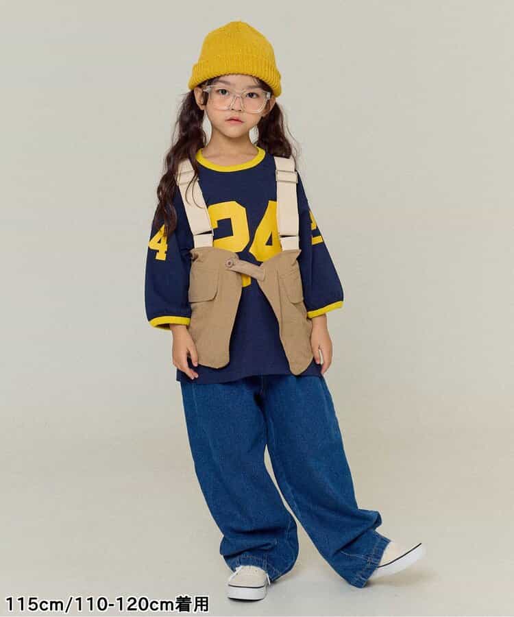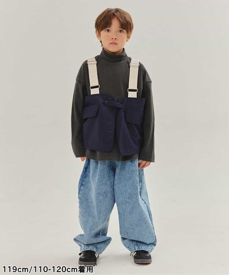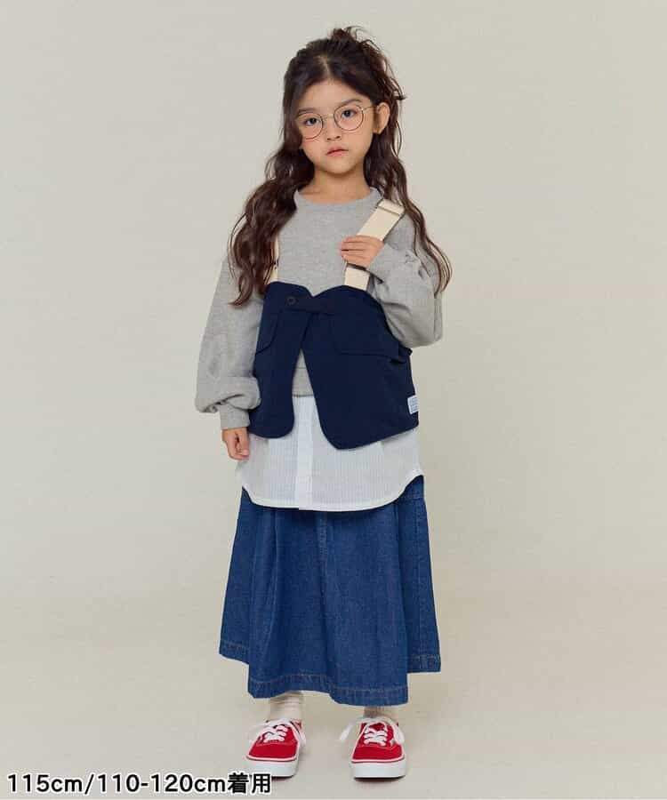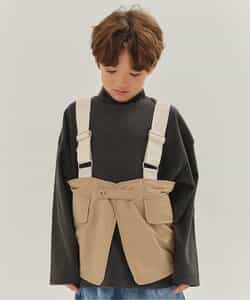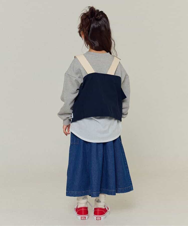 ベージュとデニムの2色展開のユーティリティベスト。ロンTやトレーナーの上に重ねてコーデのアクセントにぴったり。女の子はワンピースの上に合わせてもかわいく着こなせます。 ベージュは同シリーズのスカートやワイドパンツと同素材で、セットアップ風の着こなしも可能。肩ベルトで長さ調整ができるので、成長に合わせて長く着られるのもうれしいポイントです。シンプルなデザインながらボタンやポケットなど細部までにこだわっています。