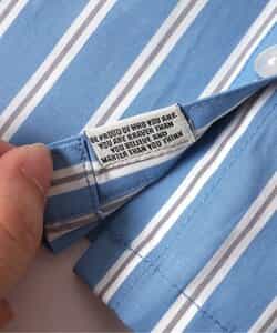 40℃を上限に洗濯機で洗濯、漂白剤を使用禁止、色物は同系の色と一緒、洗濯後直ちに取出し、タンブル乾燥不可、日陰で吊り干し、低温でアイロン、商業ドライクリーニング不可