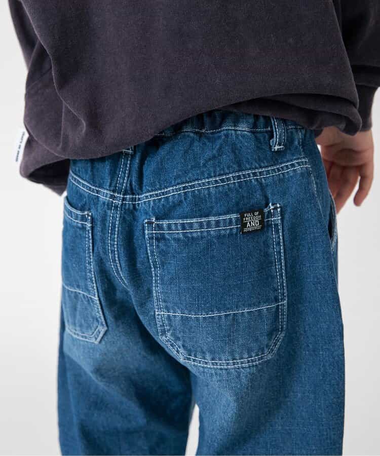 【7/29(火)21:00~販売】BREEZE(ブリーズ)のパンツ「LOVE DENIM」は、通園・通学にもおすすめな、おしゃれで動きやすいデザインが人気!<お取り扱いのご注意>この商品はユーズド感を出す為、製品洗い・製品染め・ブリーチ(脱色)・生地切れ・糸切れ等の2次加工を施しております。製品の特性上1枚ずつの加工となり、多少の歪み・シワ・色の出方・風合い・サイズ等1枚ごとに微妙に違います。尚、着用や洗濯を繰り返すことにより加工が徐々に進行し、あたり・ほつれなどが表れます。以上の点をご留意の上、他の製品では味わえない雰囲気をお楽しみ下さい。