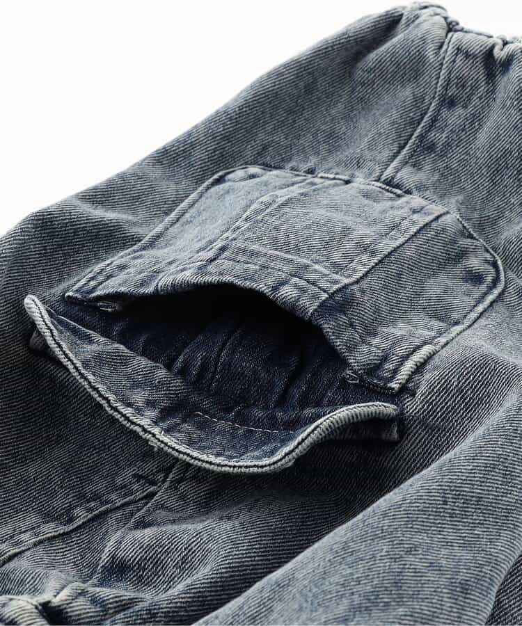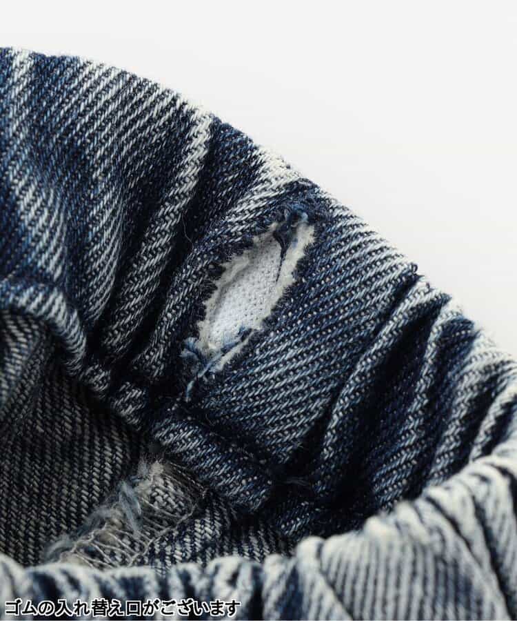 この商品はユーズド感を出す為、製品洗い・製品染め・ブリーチ(脱色)・生地切れ・糸切れ等の2次加工を施しております。