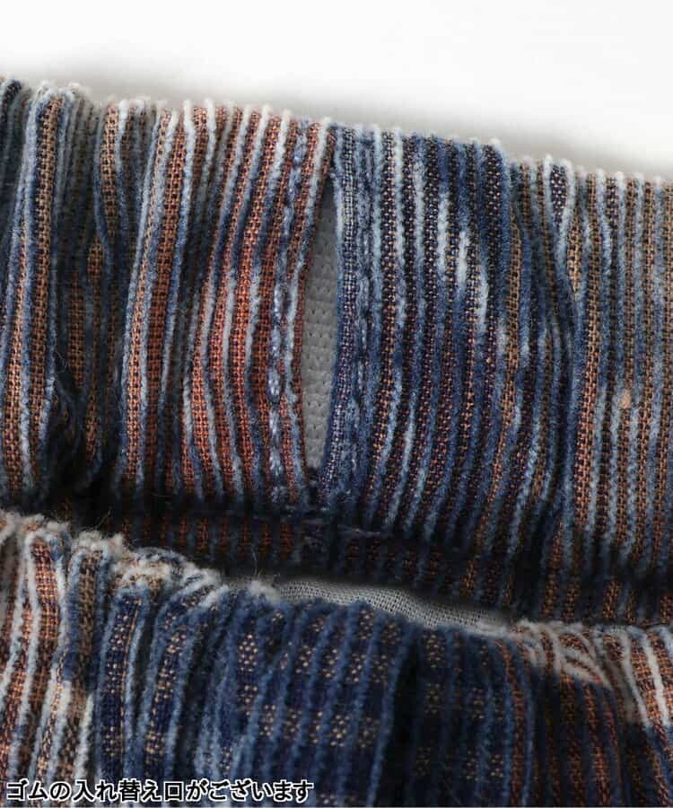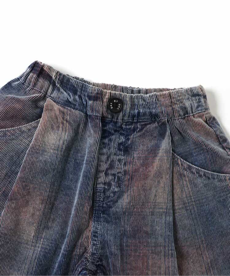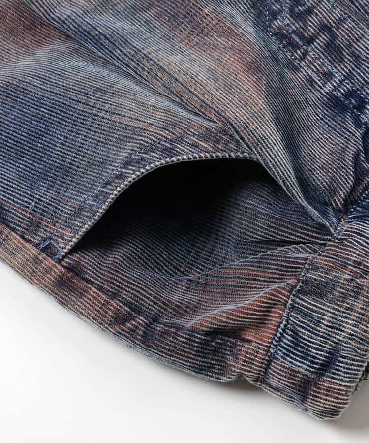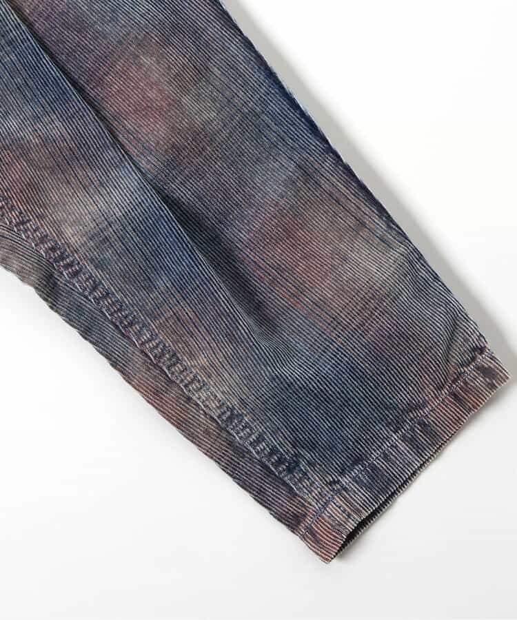 この商品はユーズド感を出す為、製品洗い・製品染め・ブリーチ(脱色)・生地切れ・糸切れ等の2次加工を施しております。