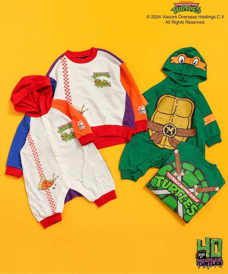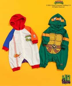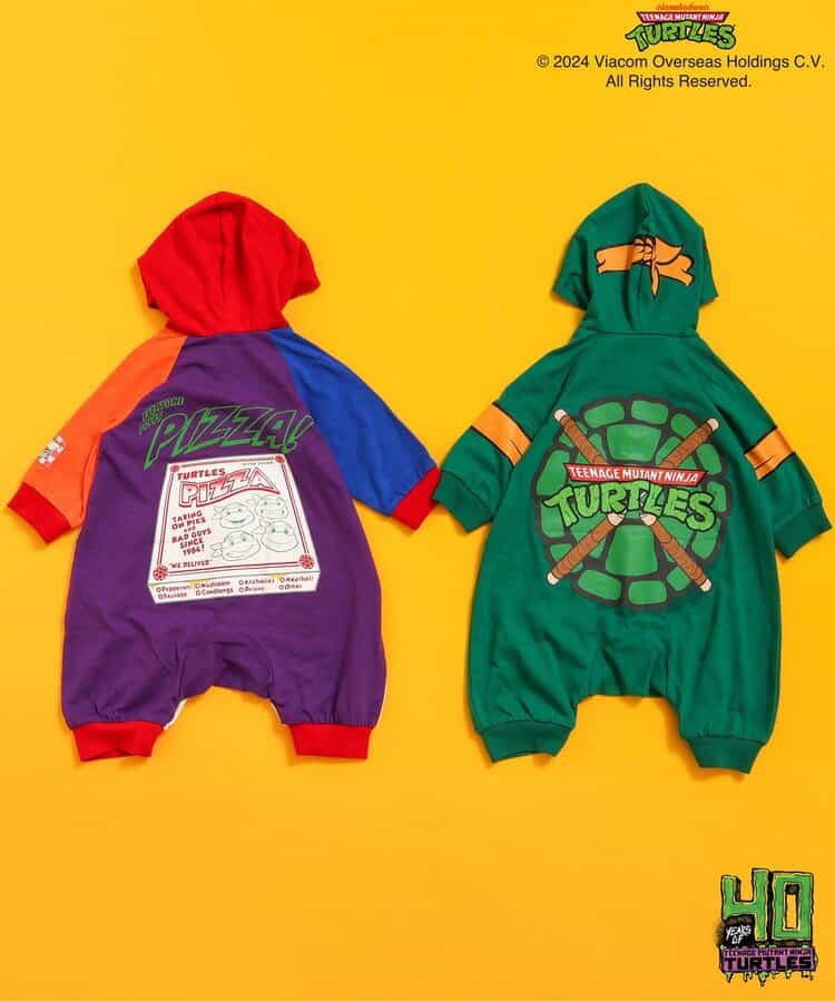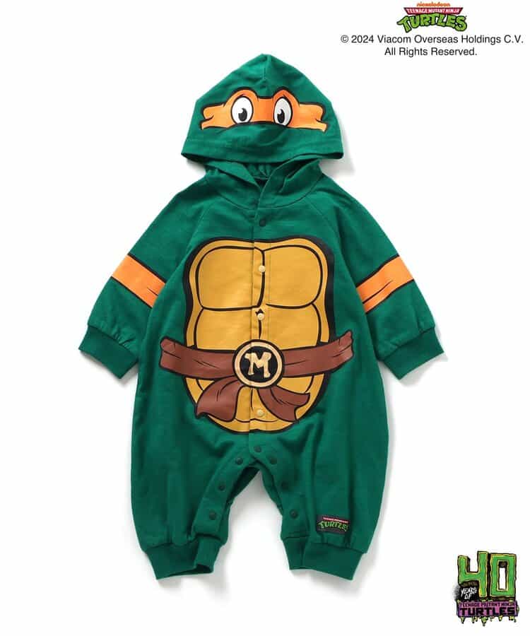 ニューヨークを舞台に、悪から街を守るために戦うカメの忍者4人組を描いた、【ミュータント・ニンジャ・タートルズ】のアイテムが登場!フード付きのカバーオールはグリーンとクレイジーカラーの2色展開◎タートルズになりきれちゃう!?とってもキャッチーなデザインのグリーン★カラー配色がとっても目を惹くクレイジーカラーは4人の大好きなピザをモチーフにデザイン★世界中で強い人気を誇る「ミュータント・ニンジャ・タートルズ」これを着てきみもヒーローの仲間入り!<お取り扱いのご注意>