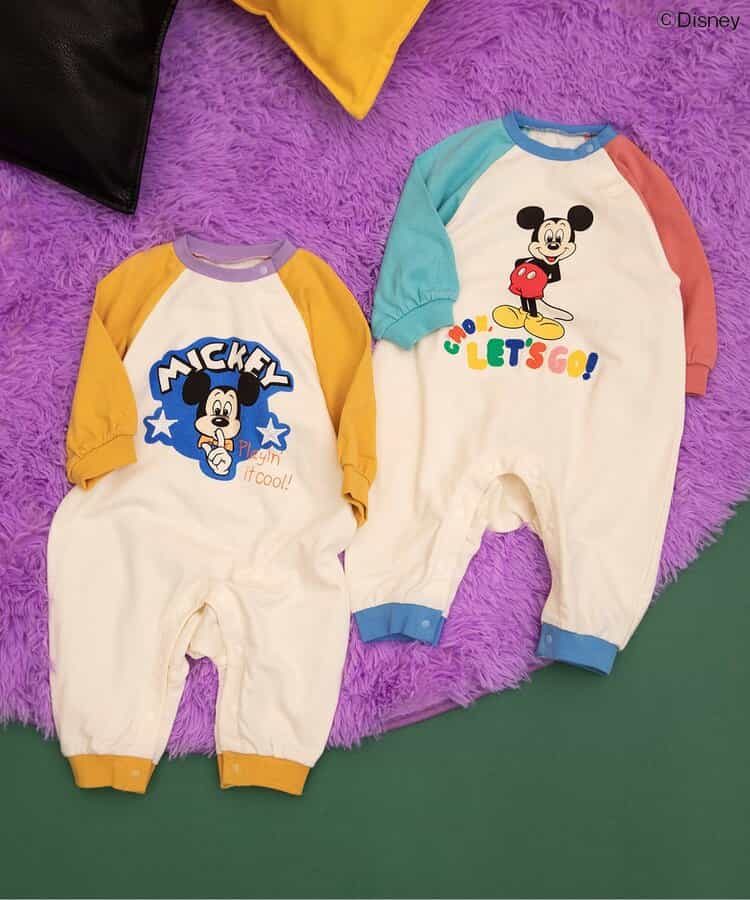 「ミッキー・マウス」と「ミニー・マウス」がデザインされた、見ているだけで元気が出るポップでカラフルなカバーオール♪