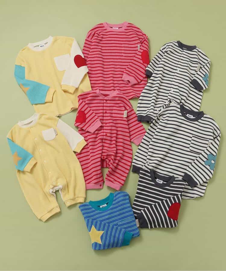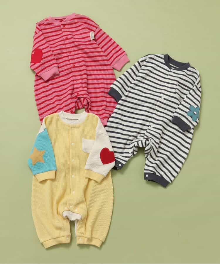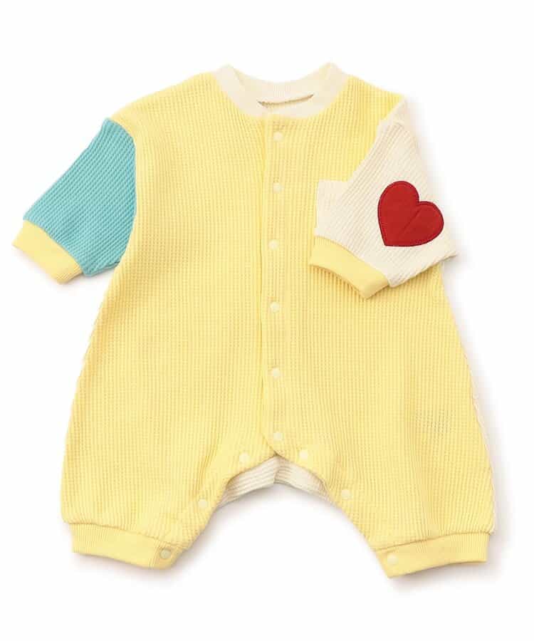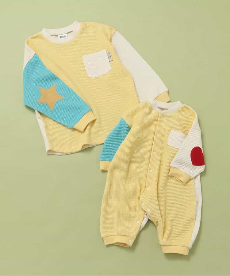 BREEZE(ブリーズ)のカバーオール・ロンパース「【リンク】いろいろパッチワッフルカバーオール」は、小さいお洋服にこだわりを詰め込んだ大人顔負けのデザインが人気!出産祝いのギフトにもおすすめです♪