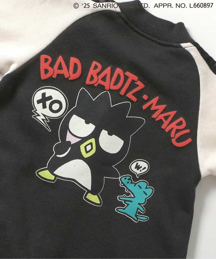 【8/8(木)お昼12時~発売】 【サンリオキャラクターズ】 バッドばつ丸・けろけろけろっぴ・シナモロールのアイテムが登場! スカジャン風のデザインがポイント!前にもうしろにも、かわいいキャラクターたちが♪♪ サイドのさりげないタグにも注目・・! キッズのスカジャン風カットソーカーデ とのリンクコーデもおすすめ♪きょうだいでおそろいを楽しもう! ママ世代もなつかしいキャラクターたち・・♪みんなはどれにする??♪【サンリオキャラクターズ】アイテム一覧はこちら >> <お取り扱いのご注意>この商品は着用中の摩擦や洗濯により毛羽の乱れ、毛羽脱落、毛玉が生じることが有ります。できるだけ美しくご利用頂く為に次のことにご留意下さい。○毛玉は毛玉取り器またはハサミで丁寧にカットして下さい。○毛羽が他に付着した際はテープやブラシで除去して下さい。○他の製品とは洗わず、単独でお洗濯して下さい。○タンブル乾燥はお避け下さい。この商品のプリント部分は洗濯を繰り返すことにより、起毛・光沢が徐々に消失、ひび割れ、脱落することがあります。出来るだけ美しくご利用頂くために次のことにご留意下さい。○ 洗濯、保管の際、プリント面同士が重ならない様にご注意下さい。○ プリント部分のもみ洗いやタンブル乾燥機の使用はお避け下さい。○ 洗濯後、すみやかに広げて下さい。○ 脱水は弱く、形を整えてから干して下さい。○ プリント部分にアイロンを当てないで下さい。