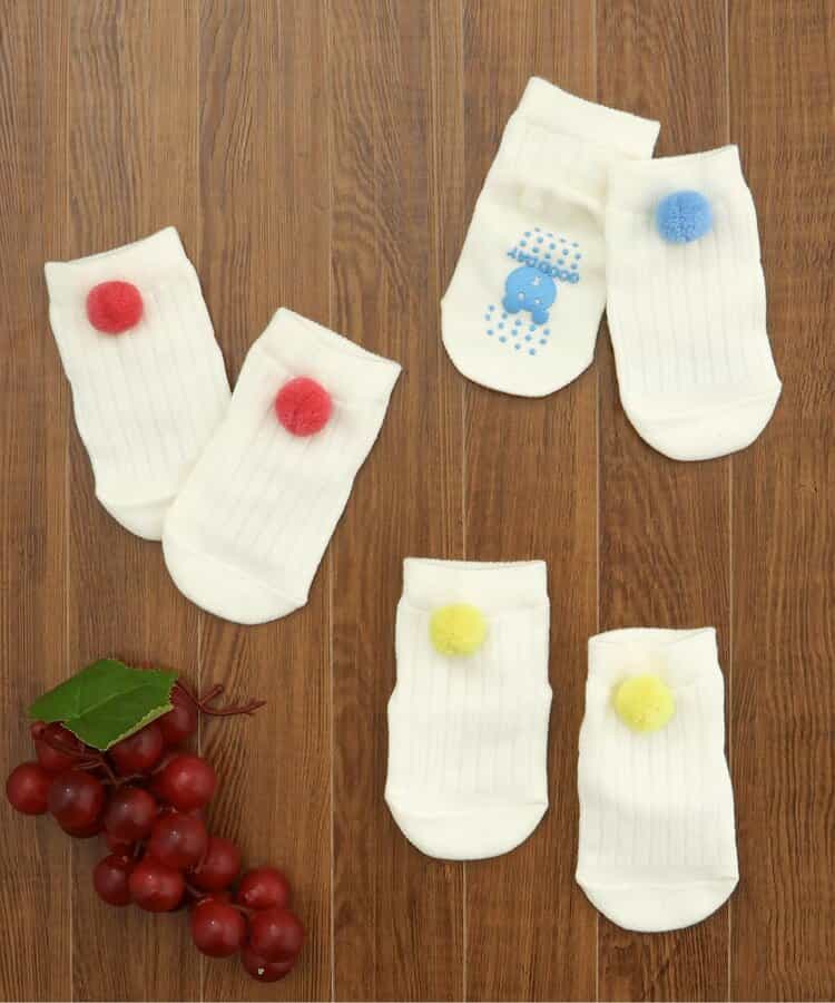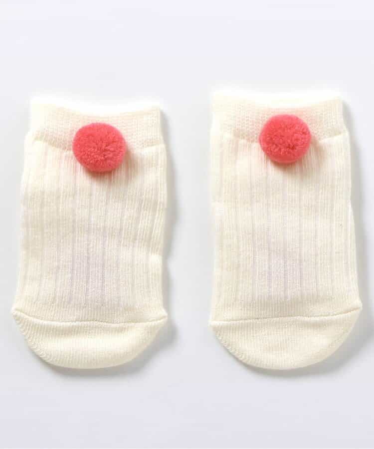 BREEZE(ブリーズ)のタイツ・ソックス「梵天ベビーソックス」は、手頃な価格とおしゃれなデザインが人気!靴下のSS・S・10-12cm・13-15cm、タイツの70-80cm・80-90cm・90-100cmには基本的に靴下に滑り止め加工がございます。(一部除外あり)