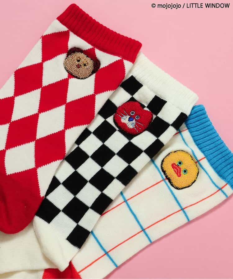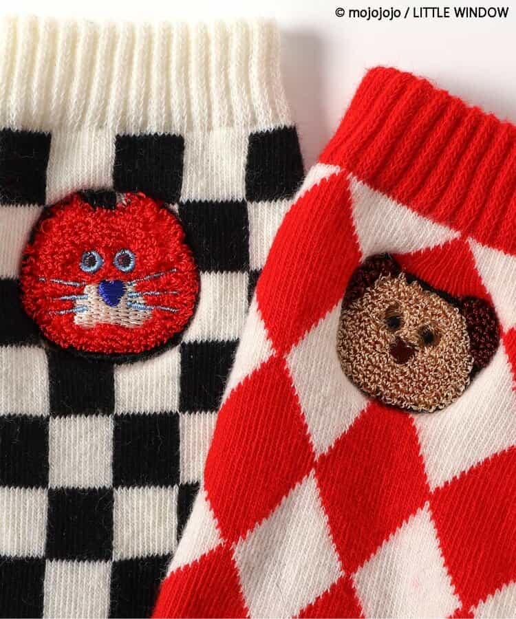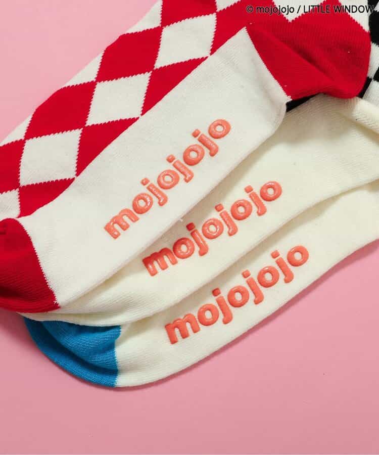 【10/17(金) お昼12:00~販売】 【mojojojo】 ぬいぐるみ作家、尾崎歩美さんがつくる“のほほ~ん”としたおとぼけな表情が愛くるしいmojojojo(モジョジョジョ)とのコラボレーションソックス♪ 立体的なサガラ刺繍とかわいい総柄、配色がポイント◎ 大人サイズもご用意。 親子でおそろいも楽しんで♪【リンク】WEB限定 mojojojoソックス(大人)はこちら>>【mojojojo】コレクションアイテムはこちら>>靴下のSS・S・10-12cm・13-15cm、タイツの70-80cm・80-90cm・90-100cmには基本的に靴下に滑り止め加工がございます。(一部除外あり)
