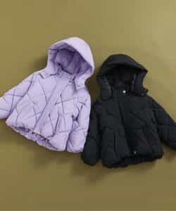 【11/6(木)21:00~販売】ダイヤキルトデザインで可愛いコーデにも、ちょっぴり大人っぽコーデにも合うブラックとラベンダーの2色展開◎ フードは取り外し可能でシーンやスタイリングに合わせて使いやすい! アウターの中はフリース生地になっており、寒い日もあったかい♪ マシンウォッシャブルでおうちの洗濯機で洗えるのも嬉しいポイント♪