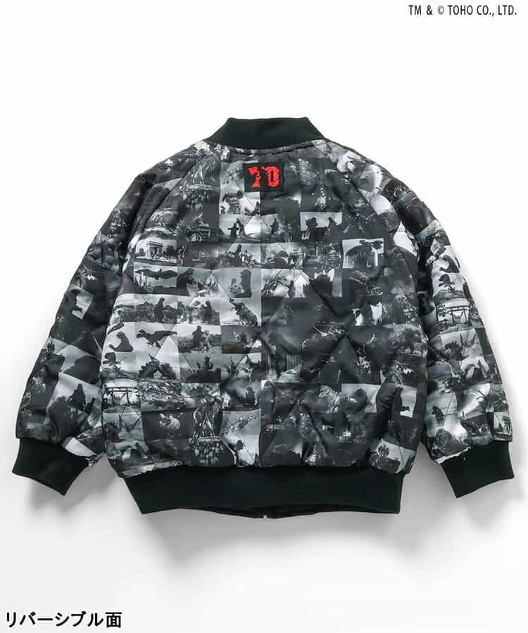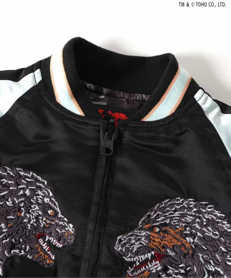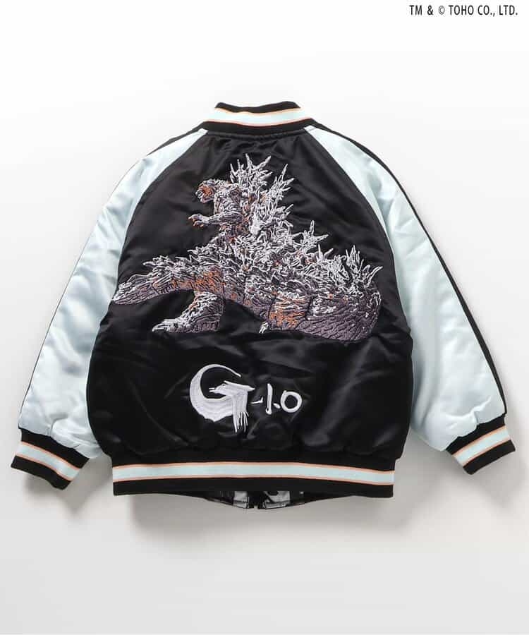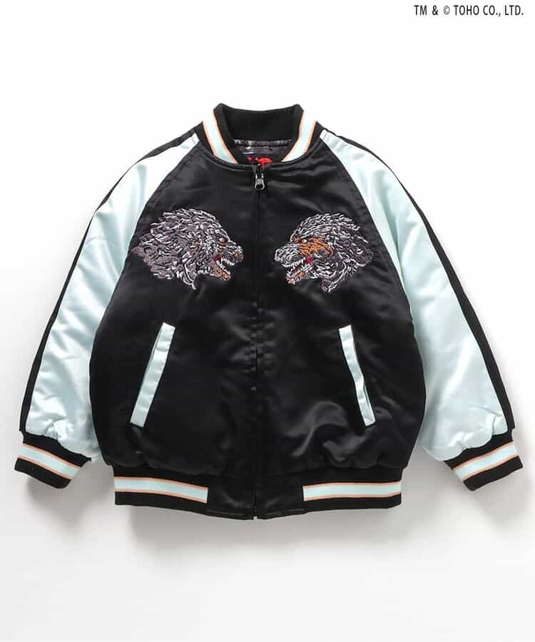 【11/5(水)21時~販売】 【ゴジラ】ファン必見!!ゴジラ映画の魅力を存分に詰め込んだ豪華なスカジャン!リバーシブルデザインで、親子でおそろいもできちゃうスカジャンは着ているだけでワクワク!細やかな刺繍は暗いところで光る蓄光性能つき!!◎迫力のあるこだわりが詰まったデザインアイテムで親子コーデを楽しもう★大人サイズはこちら >>