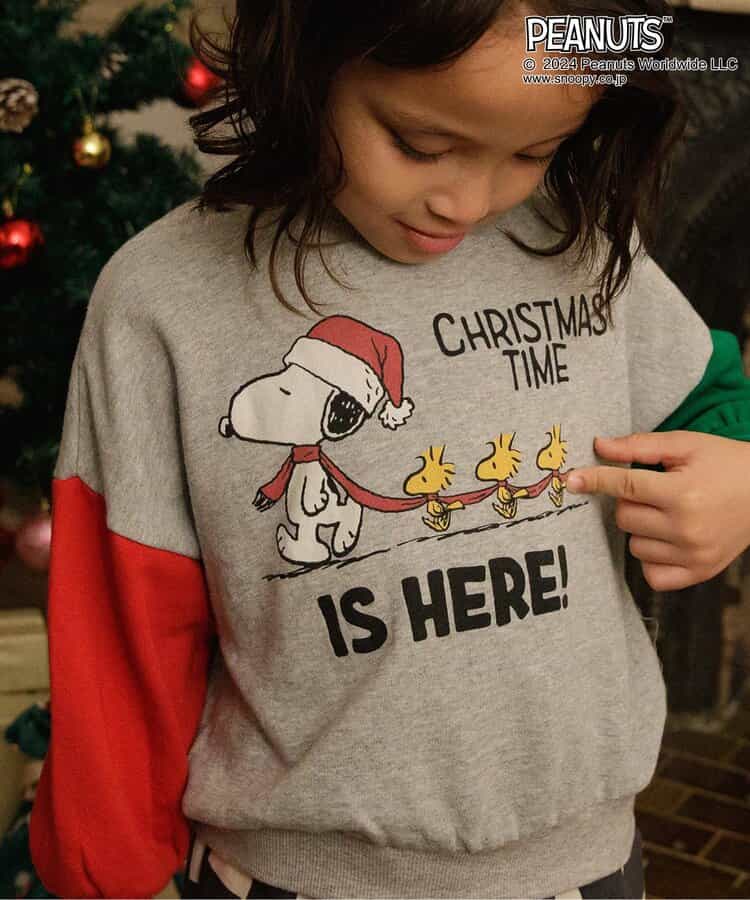 \ PEANUTS /サンタの帽子を被ったスヌーピーやチャーリ?・ブラウンなど、クリスマスを楽しむキャラクターたちがとっても可愛いトレーナー♪きょうだいやお友だちとのお揃いもGOOD!クリスマスカラー&デザインでこれ一枚でクリスマス気分を楽しめちゃう♪