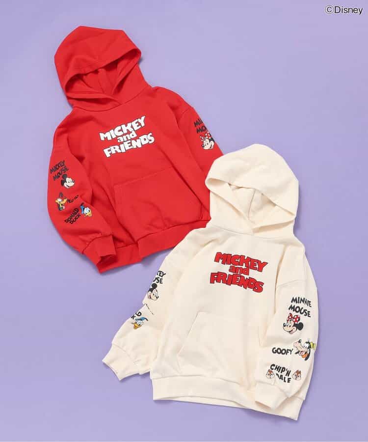 【Disney】 袖のデザインに注目!ディズニーキャラクターデザインのかぶりパーカー♪ オフホワイトとレッドの2色展開でユニセックスで着用OK◎ サロペットやジャンスカと合わせるカジュアルコーデがおすすめ! コーデのポイントになるアイテムです!ディズニーコレクション一覧はこちら >><お取り扱いのご注意>この商品は着用中の摩擦や洗濯により毛羽の乱れ、毛羽脱落、毛玉が生じることが有ります。できるだけ美しくご利用頂く為に次のことにご留意下さい。○毛玉は毛玉取り器またはハサミで丁寧にカットして下さい。○毛羽が他に付着した際はテープやブラシで除去して下さい。○他の製品とは洗わず、単独でお洗濯して下さい。○タンブル乾燥はお避け下さい。この商品のプリント部分は洗濯を繰り返すことにより、起毛・光沢が徐々に消失、ひび割れ、脱落することがあります。出来るだけ美しくご利用頂くために次のことにご留意下さい。○ 洗濯、保管の際、プリント面同士が重ならない様にご注意下さい。○ プリント部分のもみ洗いやタンブル乾燥機の使用はお避け下さい。○ 洗濯後、すみやかに広げて下さい。○ 脱水は弱く、形を整えてから干して下さい。○ プリント部分にアイロンを当てないで下さい。