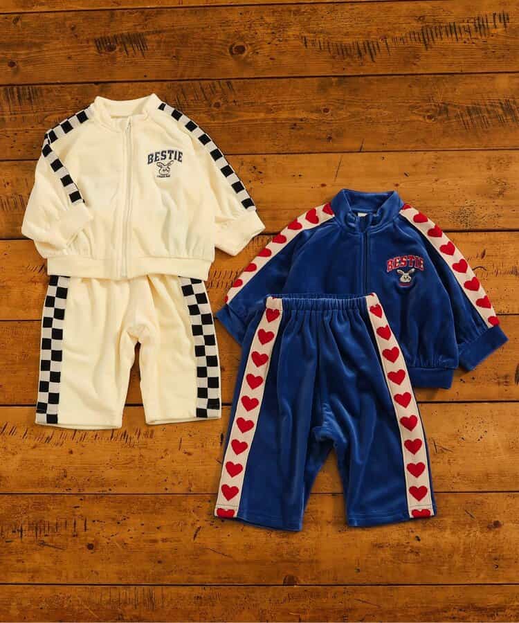 BREEZE(ブリーズ)のトップス・ボトムス「Bpop ベロアセットアップ」は、小さいお洋服にこだわりを詰め込んだ大人顔負けのデザインが人気!出産祝いのギフトにもおすすめです♪