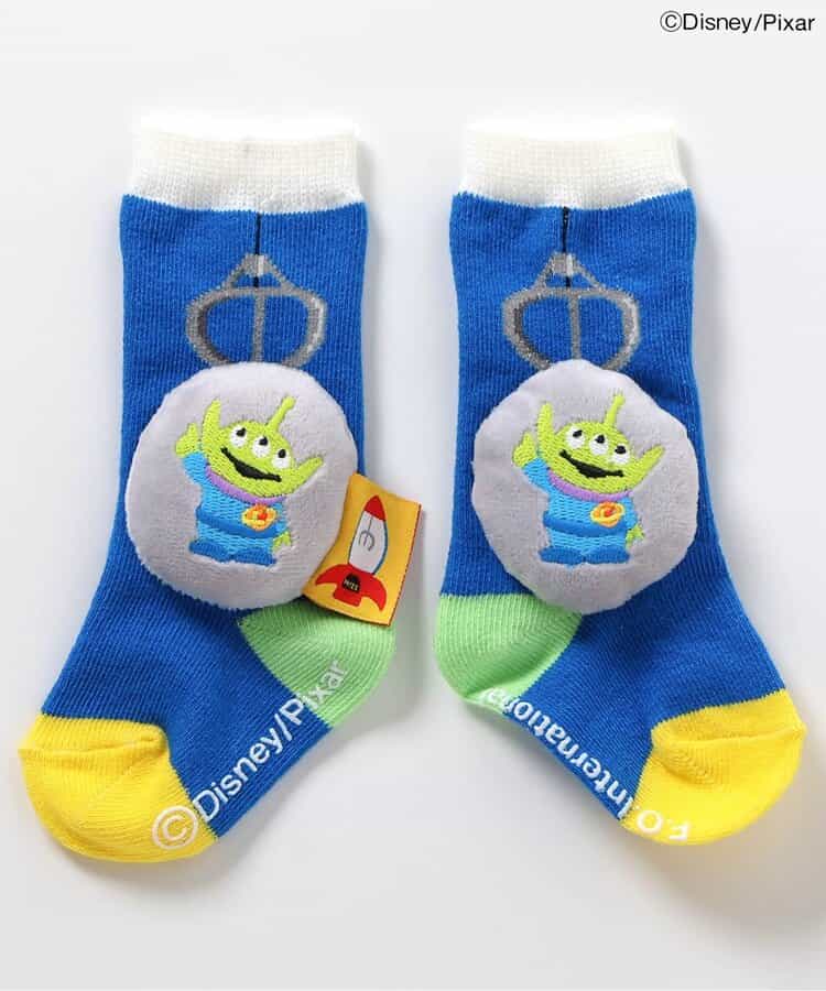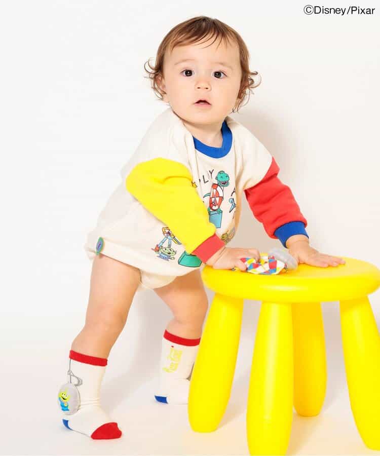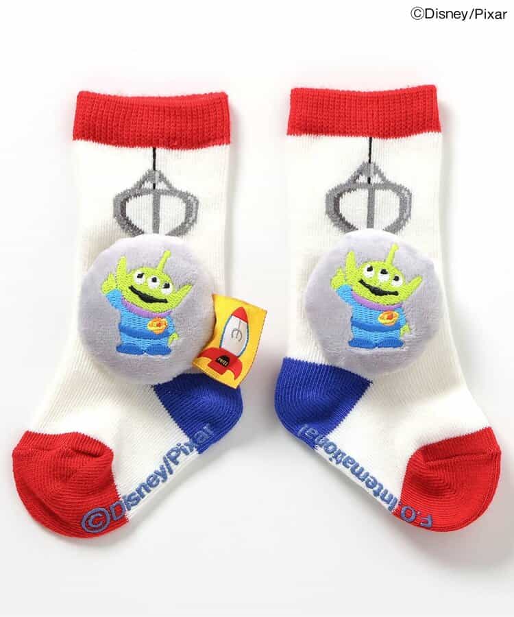 【トイ・ストーリー】みんなが知っている・・あの名シーンがベビーソックスに☆ソックスにラトルがついており、足を動かすたびにリンリンと音が鳴ります♪♪「ディズニーキャラクター/君はともだちボディオール」と合わせてトイ・ストーリーコーデもかわいすぎる!トイ・ストーリーファン必見のアイテムはウェアとセットでプレゼントとしてもおすすめです!靴下のSS・S・10-12cm・13-15cm、タイツの70-80cm・80-90cm・90-100cmには基本的に靴下に滑り止め加工がございます。(一部除外あり)