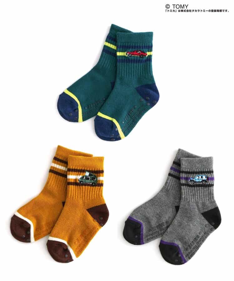【TOMICA】 ソックスが3セット入ったソックスギフトセット♪ パッケージはTOMICAデザインで、車好きキッズは気分が上がること間違いなし! パッケージの窓部分からは車のワッペンがのぞいてます。 全6色展開◎すべて違う車のワッペンがついています★ 1つははたらく車のセット、もう1つは人気車種のセットになっており、どちらのセットも楽しめます♪ 車好きキッズへ・・!★お誕生日などののプチギフトにもおすすめです★靴下のSS・S・10-12cm・13-15cm、タイツの70-80cm・80-90cm・90-100cmには基本的に靴下に滑り止め加工がございます。(一部除外あり)