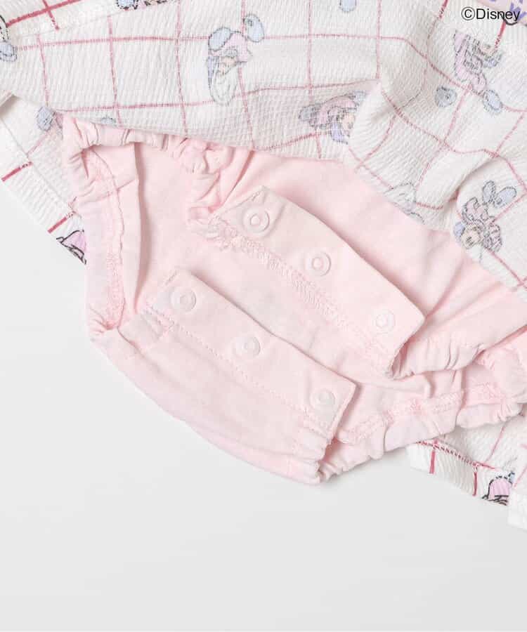 キャラクターやモチーフ柄を散りばめた、やさしくてかわいいデザイン。?フリル袖とスカート風のシルエットで、1枚でおめかし感のあるスタイルが完成します♪