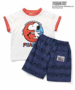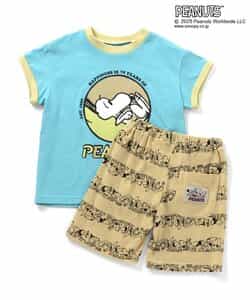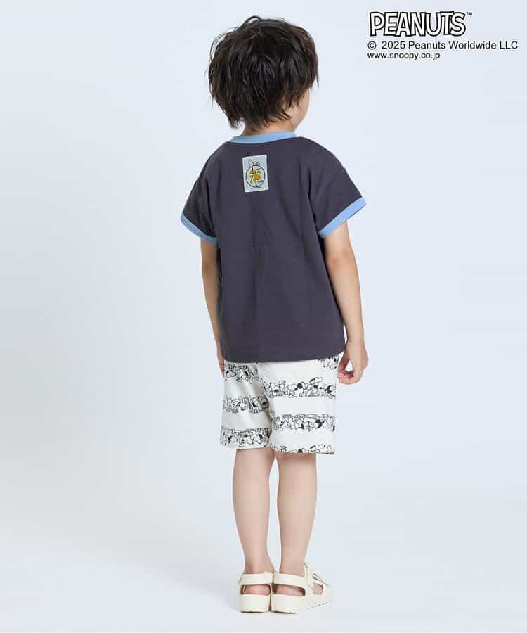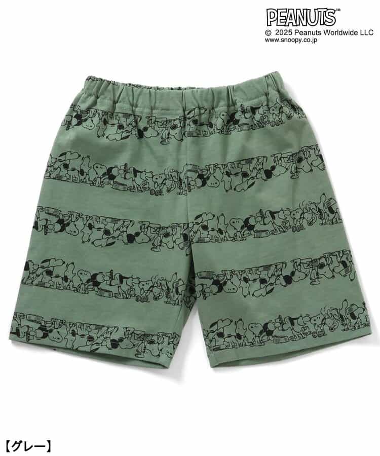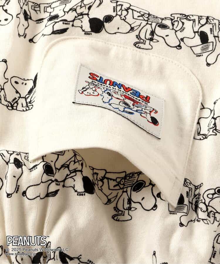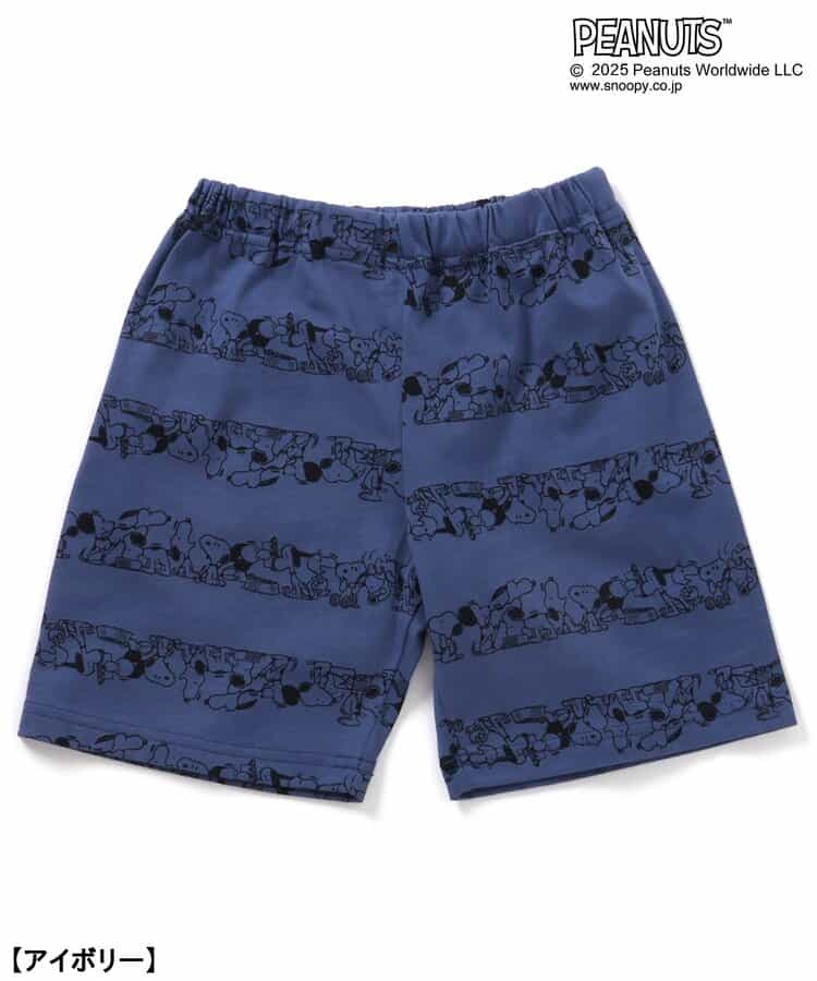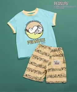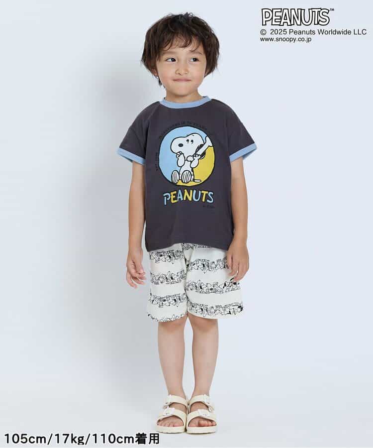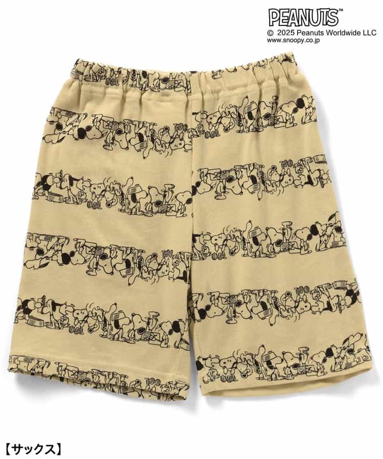 パンツにはスヌーピーが大集合したボーダー柄をあしらったデザインで、全体でPEANUTSの世界観を楽しめる1着◎