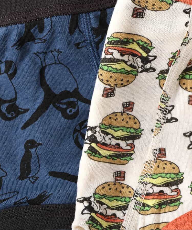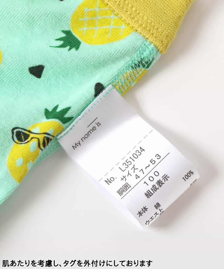 ペンギン柄、サングラスをかけたパーティーパイナップル柄、ハンバーガー柄です。※タグに表記されているサイズは【JIS規格・基本身体寸法】の胴囲部分となります。実寸サイズではございません。