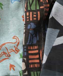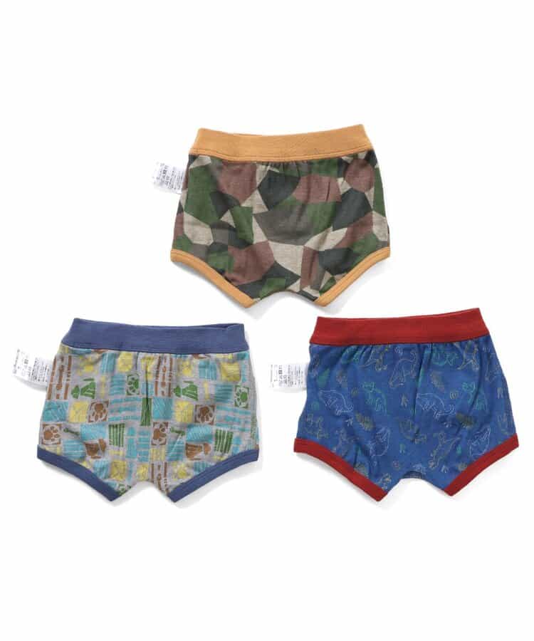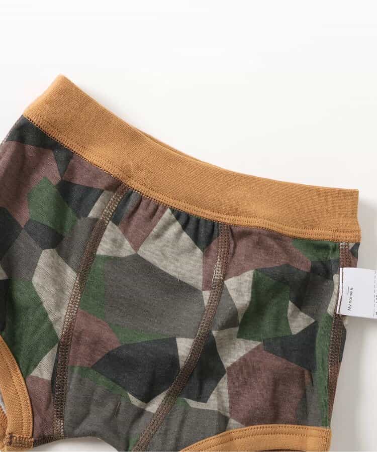 ブラック・オレンジが迷彩柄、ブラウン・ブルーがいぬ柄、グレー・レッドが恐竜柄です。※タグに表記されているサイズは【JIS規格・基本身体寸法】の胴囲部分となります。実寸サイズではございません。