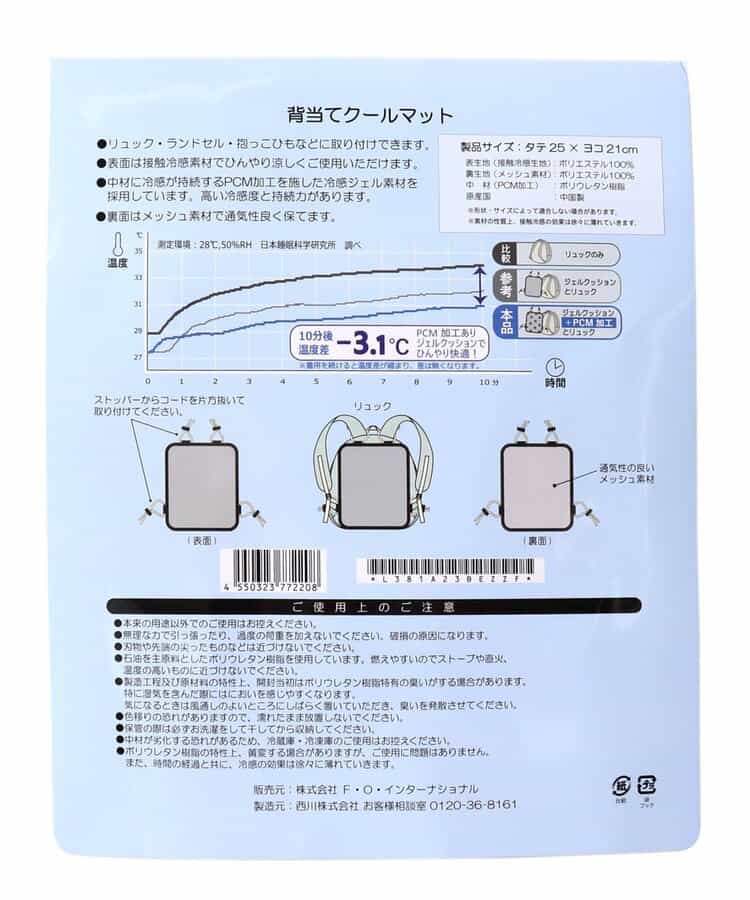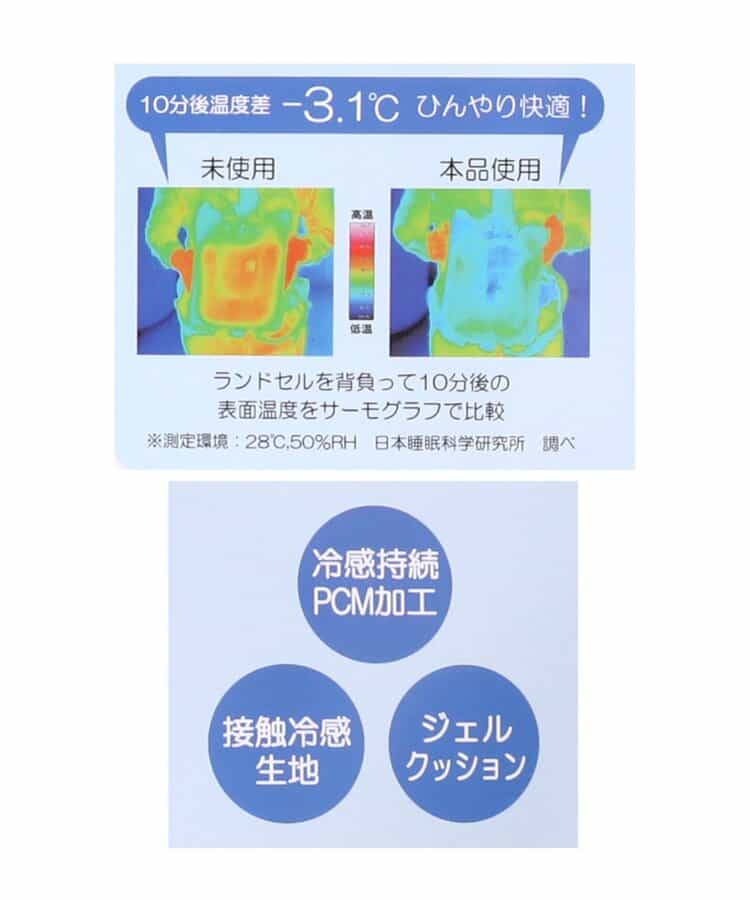 中に冷感が持続するPCM加工を施した冷感ジェル素材が入っていて、熱中症対策におすすめです。