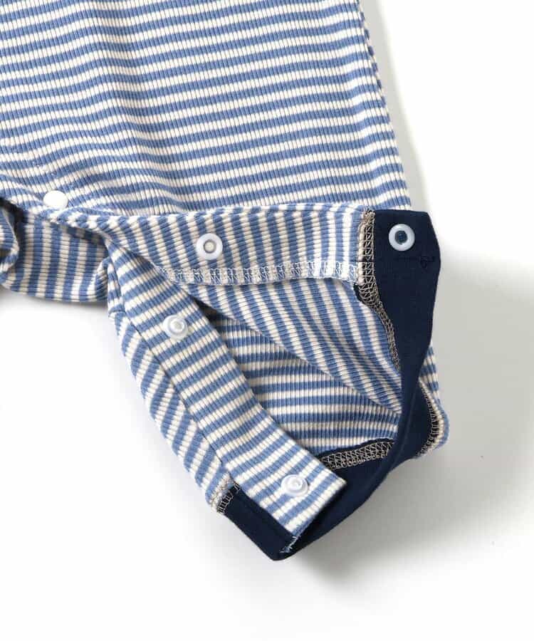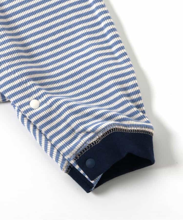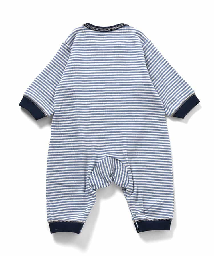 Ampersand(アンパサンド)のカバーオール・ロンパース「【リンク】サークルロゴボーダーテレコカバーオール」は、小さなお子様への贈り物や出産祝いにも最適。カジュアルスタイルが好みなベビーにおすすめ♪