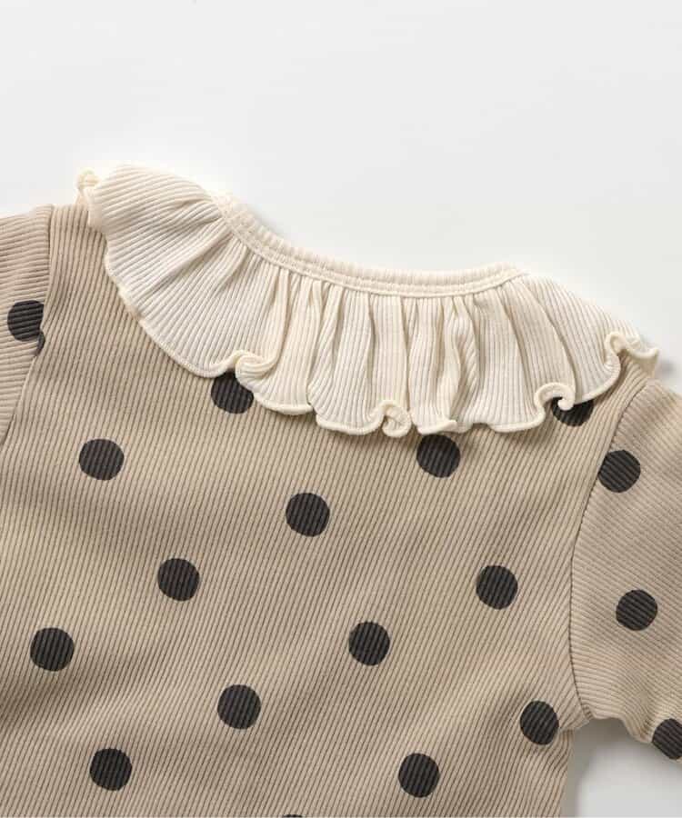 Ampersand(アンパサンド)のカバーオール・ロンパース「【リンク】ラッフルカラーテレコカバーオール」は、小さなお子様への贈り物や出産祝いにも最適。カジュアルスタイルが好みなベビーにおすすめ♪
