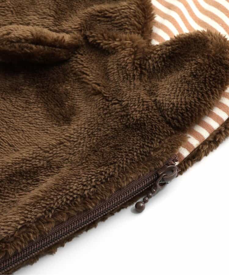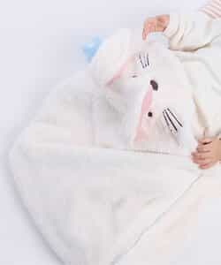 動物に覆いかぶさられているようなデザインのおくるみです。気持ちもからだもあったかくなる商品です。ギフトにもお勧めです。<お取り扱いのご注意>この商品は着用中の摩擦や洗濯により毛羽の乱れ、毛羽脱落、毛玉が生じることが有ります。できるだけ美しくご利用頂く為に次のことにご留意下さい。○毛玉は毛玉取り器またはハサミで丁寧にカットして下さい。○毛羽が他に付着した際はテープやブラシで除去して下さい。○他の製品とは洗わず、単独でお洗濯して下さい。○タンブル乾燥はお避け下さい。