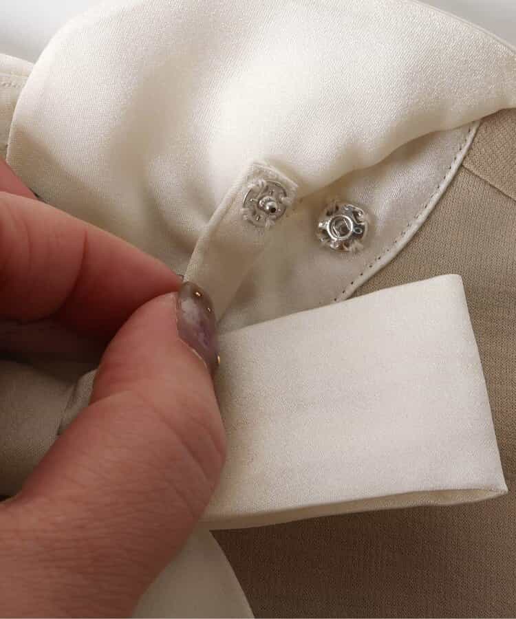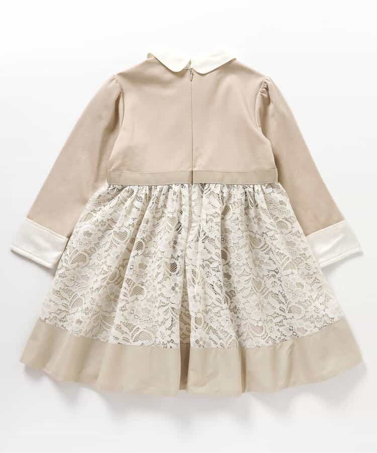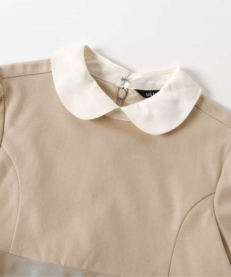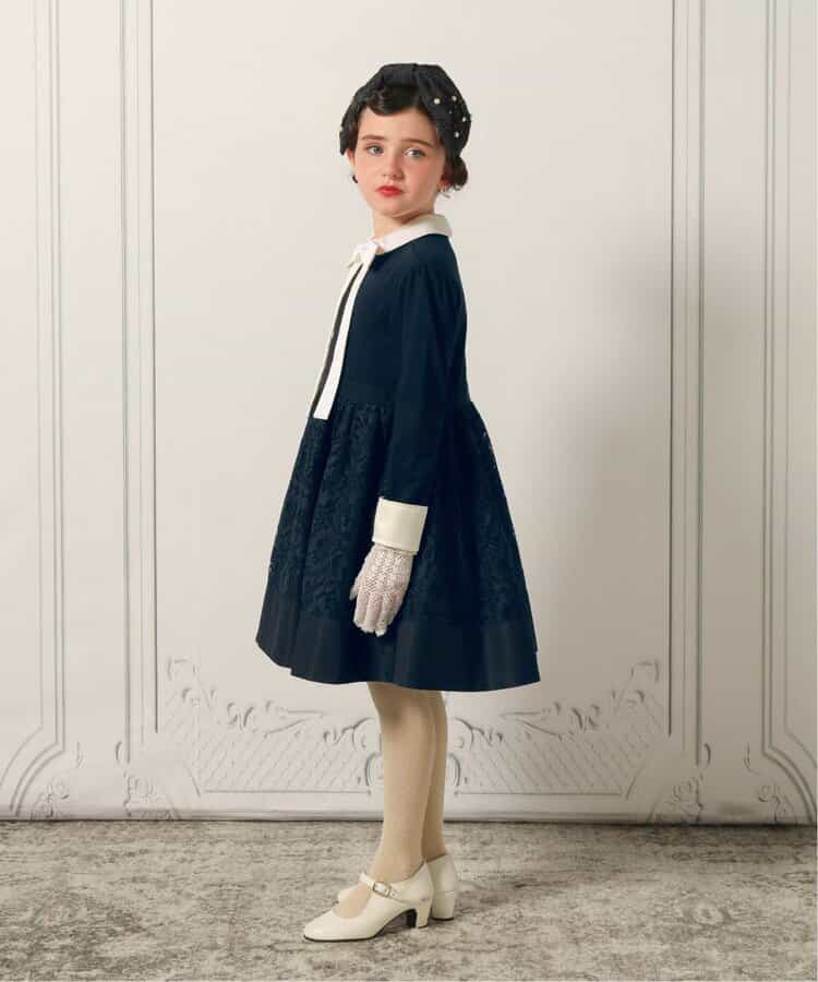 小さめのサテン素材の衿と、同素材で作ったリボンが目を引くワンピース*
