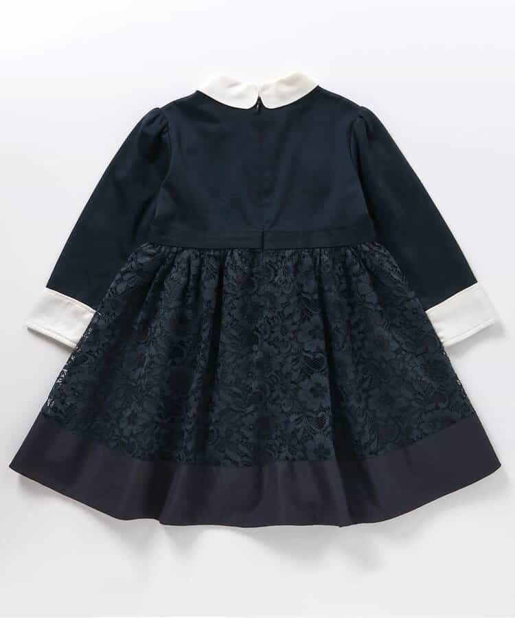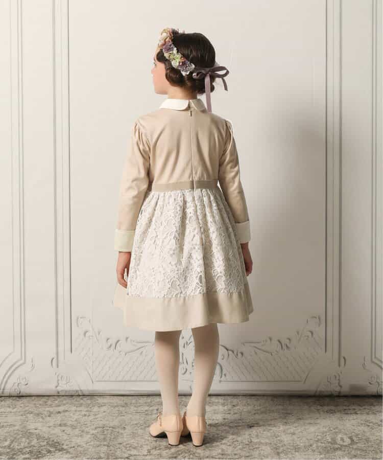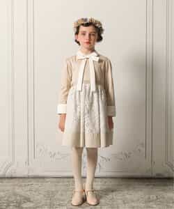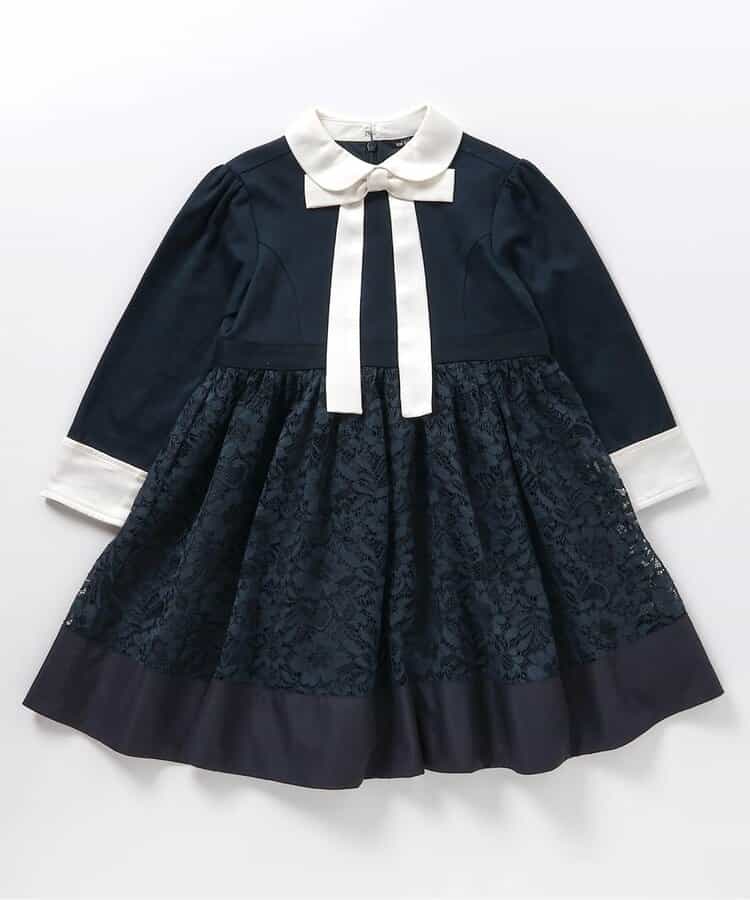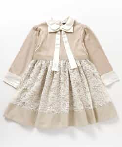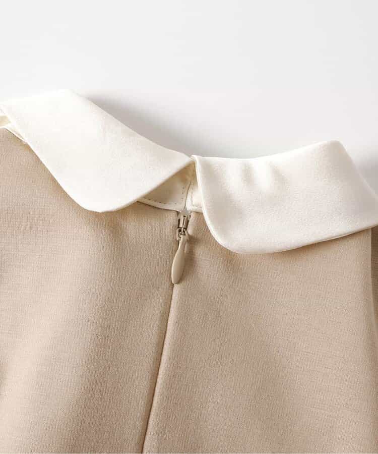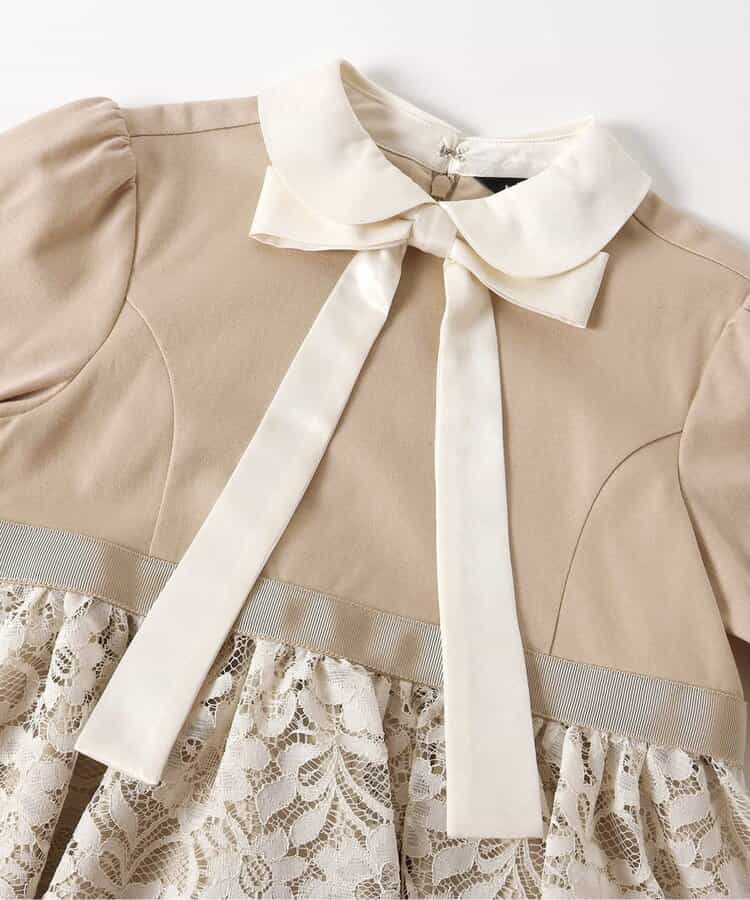 小さめのサテン素材の衿と、同素材で作ったリボンが目を引くワンピース*