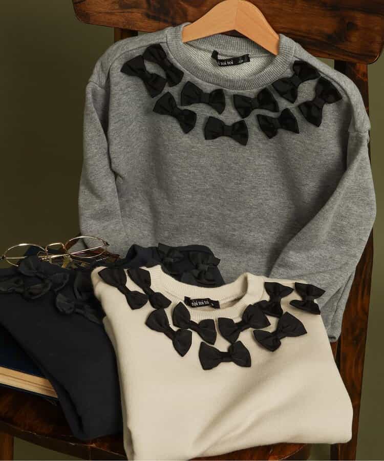 toitoitoi (トイトイトイ)の「マリィリボントップトレーナー_80_110【キッズ】」は、ノスタルジーで遊び心のあるデザインが魅力のアイテム。