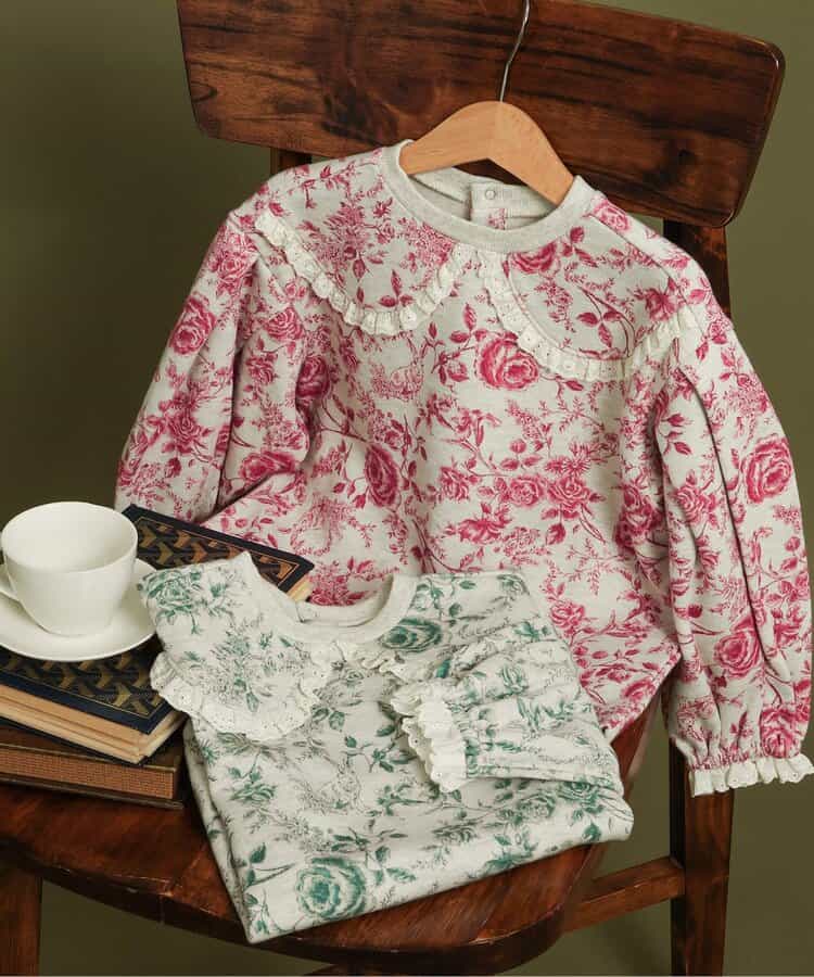 toitoitoi (トイトイトイ)の「フルレットトップ長袖Tシャツ_120_140【ジュニア】」は、ノスタルジーで遊び心のあるデザインが魅力のアイテム。