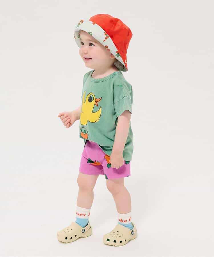 BOBO CHOSES(ボボ・ショーズ) の帽子「Juicy Tomatoesリバーシブルベビー帽子【ベビー】」独自の世界観を表現し、オーガニック素材や快適で着心地のよいデザインのコレクションが楽しめます。