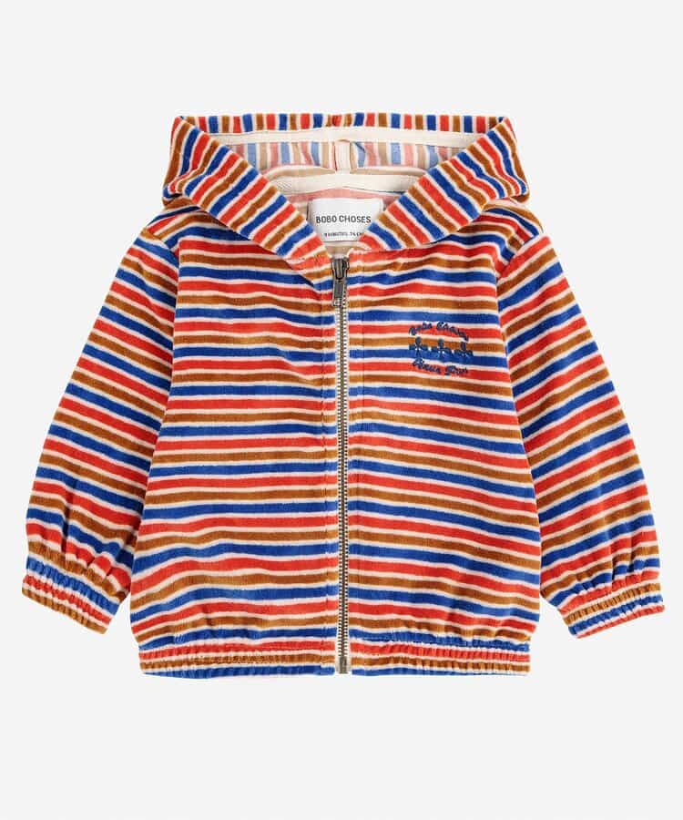 BOBO CHOSES (ボボ・ショーズ)の「ストライプ柄羽織り フード有り【ベビー】」は、独自の世界観を表現したデザインで快適な素材で着心地のいいアイテムです。