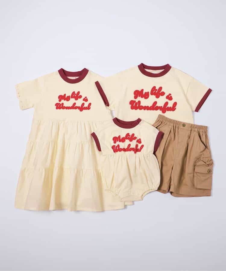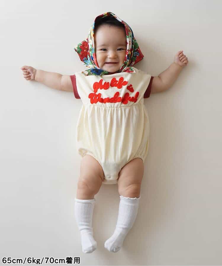 フェルトロゴがポイントのリンガーデザインのベビーロンパース。やわらかな素材感で着心地もよく、デイリーに使いやすい一枚です。刺繍裏にはあて布を施し、ベビーの肌にもやさしい仕様に。同シリーズのキッズTシャツやワンピースと合わせて、お兄ちゃんやお姉ちゃんとリンクコーデも楽しめます。【おすすめの関連アイテム】フェルトリンガーT>>フェルトリンガーTティアードワンピース>>