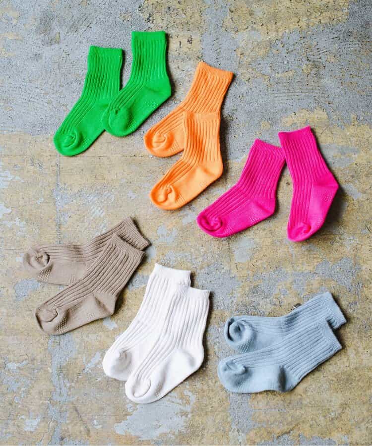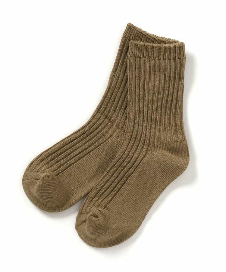 リブ編みソックスです!ナチュラルカラーが合わせやすく、糸が太く風合いがよいソックスです。程よく厚みがあり、しっかりしています◎靴下のSS・S・10-12cm・13-15cm、タイツの70-80cm・80-90cm・90-100cmには基本的に靴下に滑り止め加工がございます。(一部除外あり)