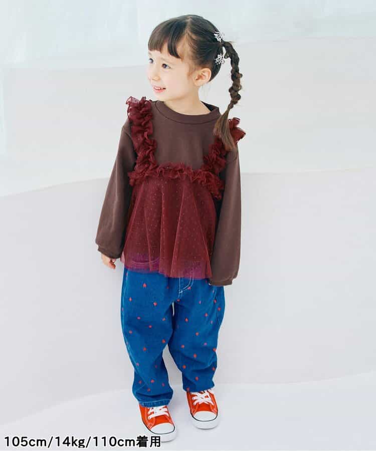 身長93cm 体重15.2kgで、size100のブラウンを購入しましたが、秋らしい色味でチュールの素材感も可愛く、お気に入りです! 合わせる小物でそれぞれで違った雰囲気を楽しめそうなので、ベレー帽やキャップ等と合わせて楽しめたらと思います。 #PR