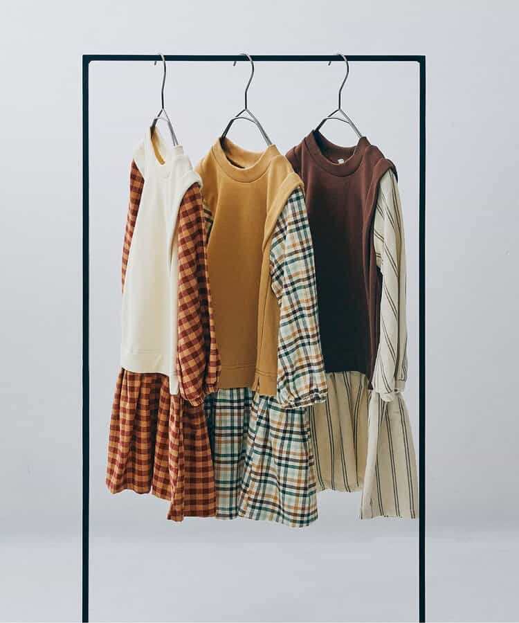 チェックやストライプのワンピースにベストがくっついたアイテムが今年も登場。シーズンムードがぐっと高まる、ブラウンやベージュ系のナチュラルなこっくりカラーで、一枚で主役になるワンピースです。同じデザインのトップスとリンクコーデもたのしめます。【おすすめのリンクアイテム】ベストとくっつきトップス>>