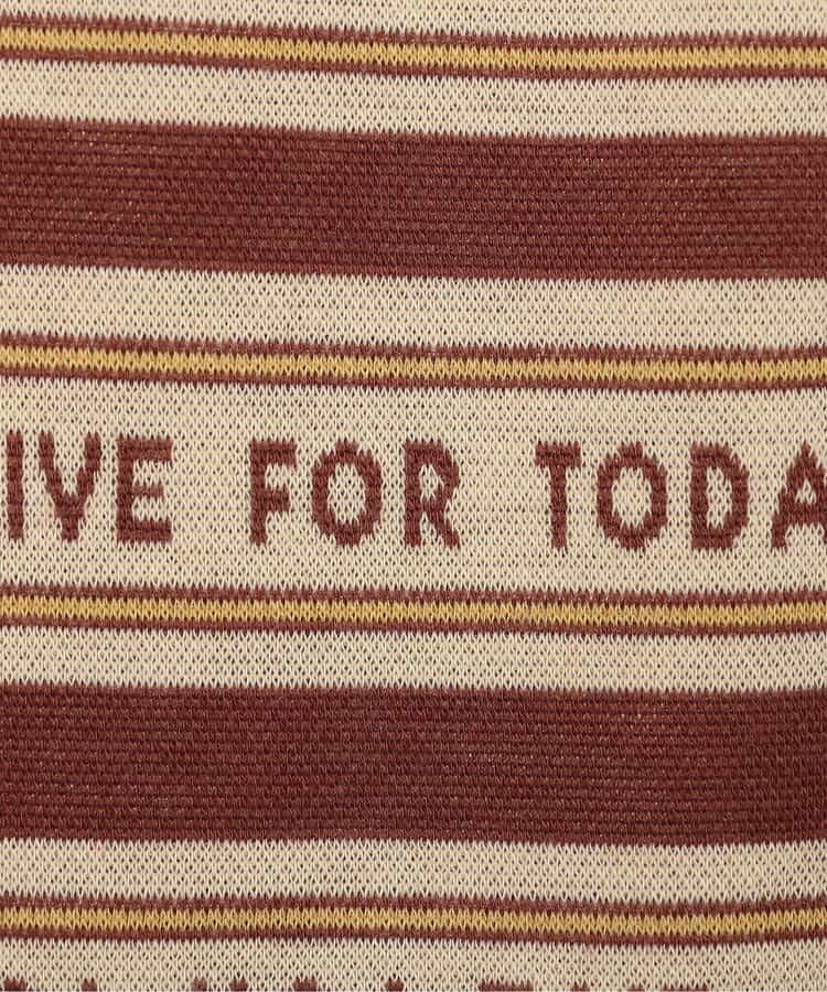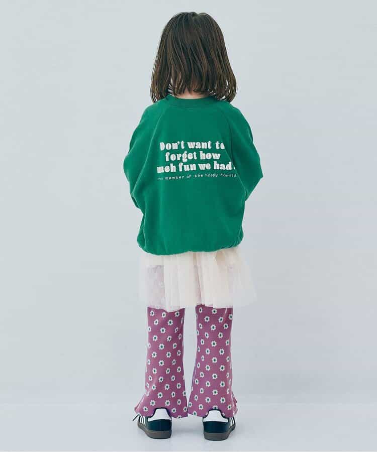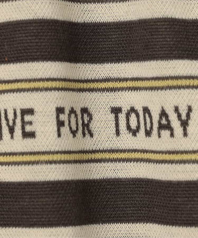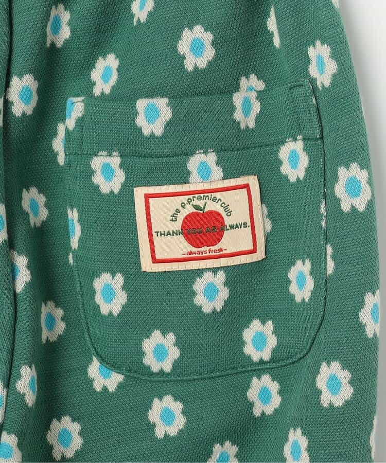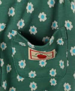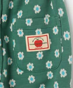 コーディネートのポイントになる花柄とロゴボーダー柄。