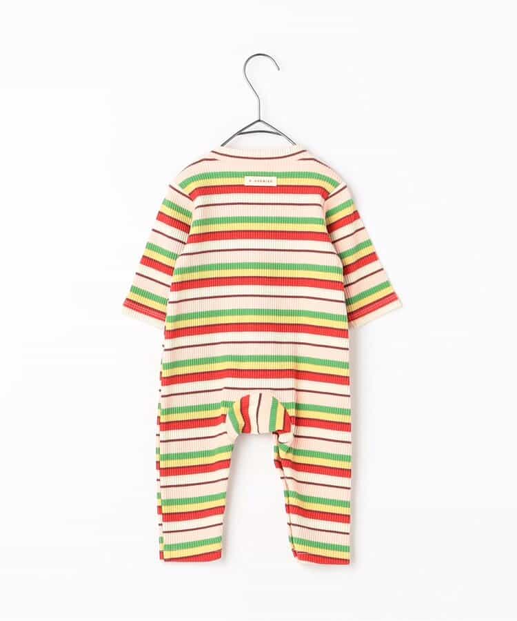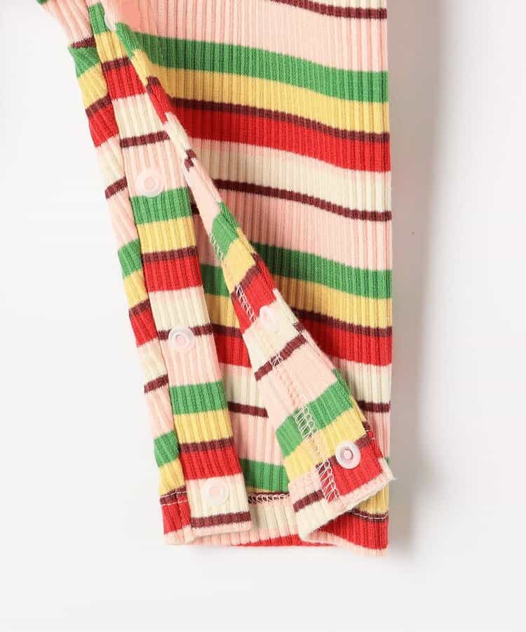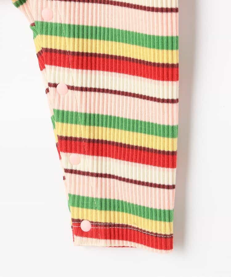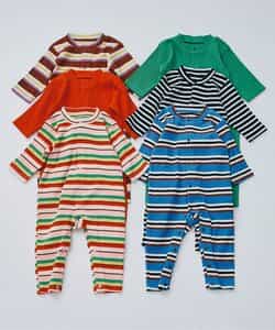 綿・ストレッチのしっかりしたリブ生地を使用したカバーオール。カラフルだけど使いやすいボーダー4色と無地2色をご用意。着用時に足が寒くないように、昨年のデザインより2cmほどパンツ部分を長めにしています。前あきのボタンは付け外ししやすいプラスチックスナップを採用。キッズのリブアイテムとリンクコーデもたのしめます。【おすすめのリンクアイテム】イロチ買いしたいストレッチリブトップス>>イロチ買いしたいリブレギンスパンツ>>