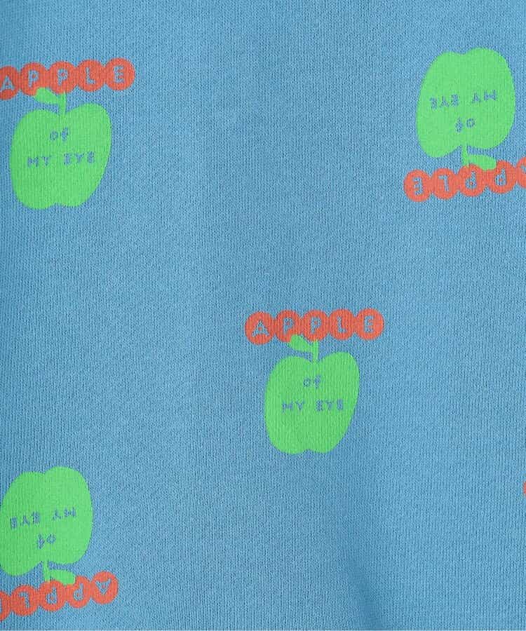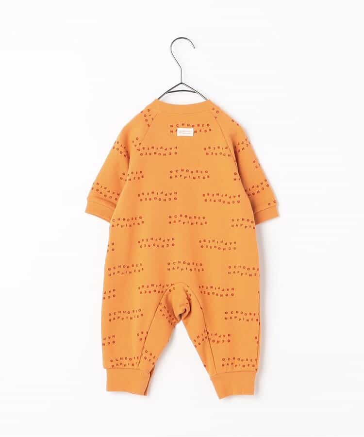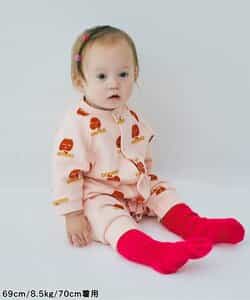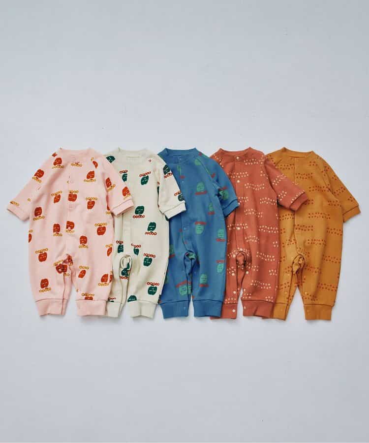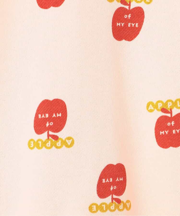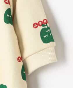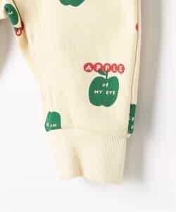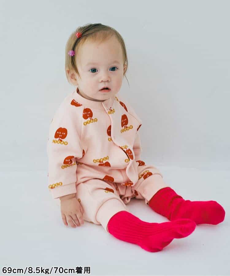 ちょっぴり古着っぽさも感じられる、リンゴとロゴの総柄がカラフルでかわいい綿100%のトレーナーカバーオール。リンゴ柄には「目に入れてもいたくない」というメッセージが込められいます。着用時に足が寒くないように、昨年のデザインより2cmほどパンツ部分を長めにしています。前あきのボタンは付け外ししやすいプラスチックスナップを採用。キッズのトレーナーとリンクコーデもたのしめます。【おすすめのリンクアイテム】イロチ買いしたい総柄トレーナー>>