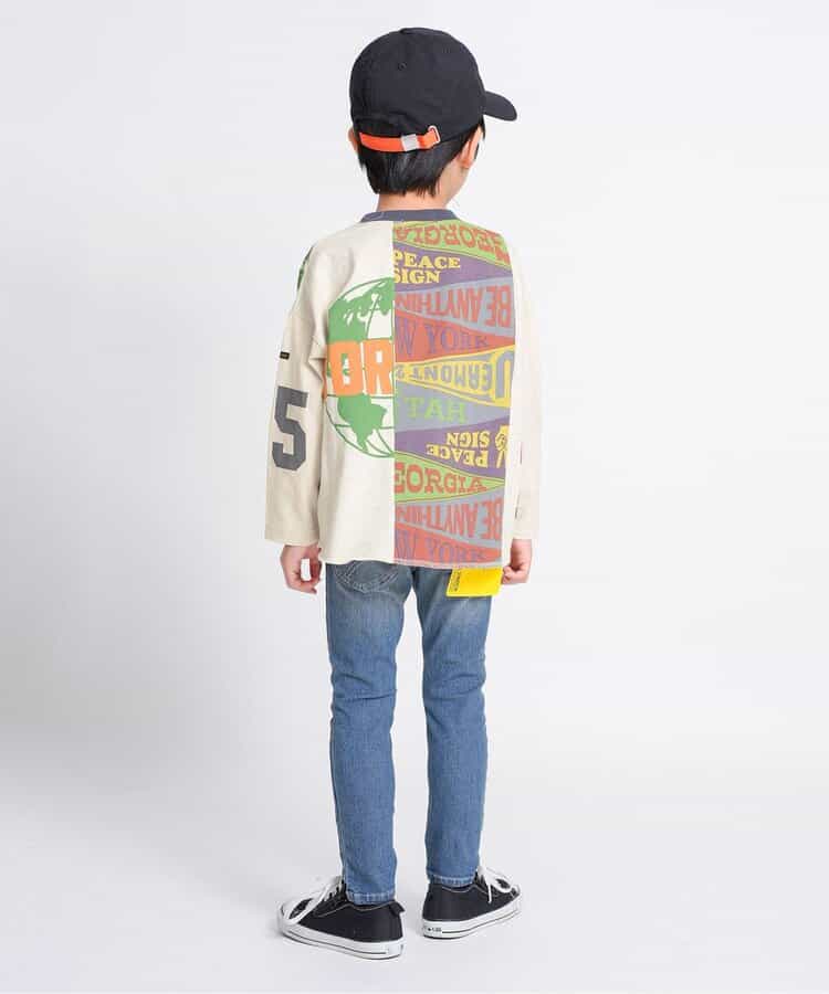 F.O.KIDS(エフオーキッズ)の長袖Tシャツ「リメイクTシャツ」で、アメカジテイストにユーズド感を加えた風合いあるデイリーカジュアルスタイルを楽しもう!アメカジテイストの子供服・ベビー服ならF.O.KIDSにおまかせ!1枚で着ても重ね着してもGOOD!