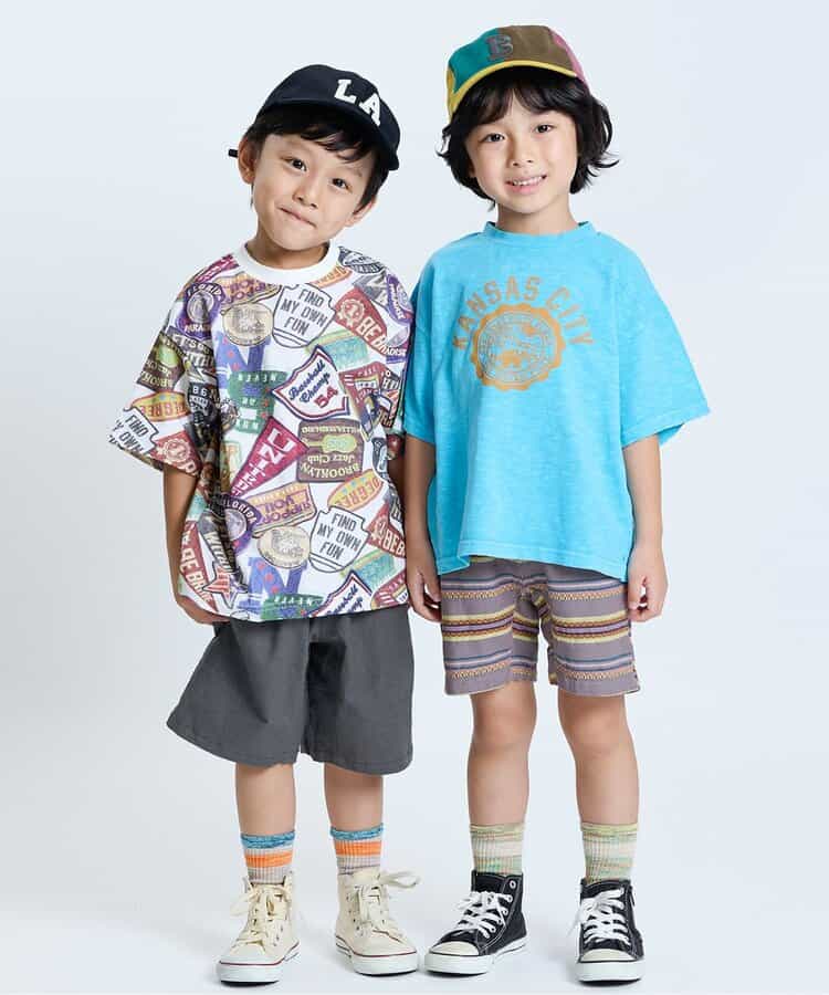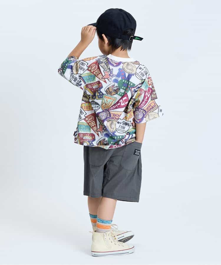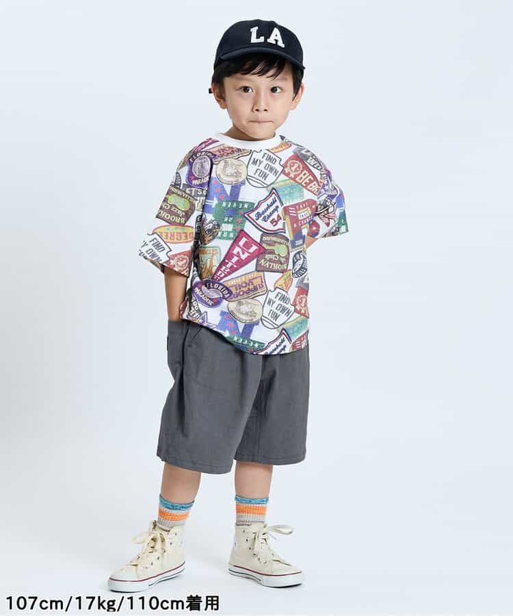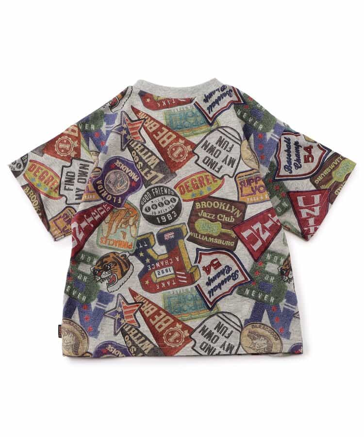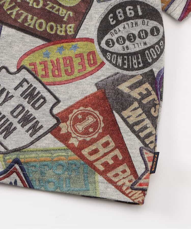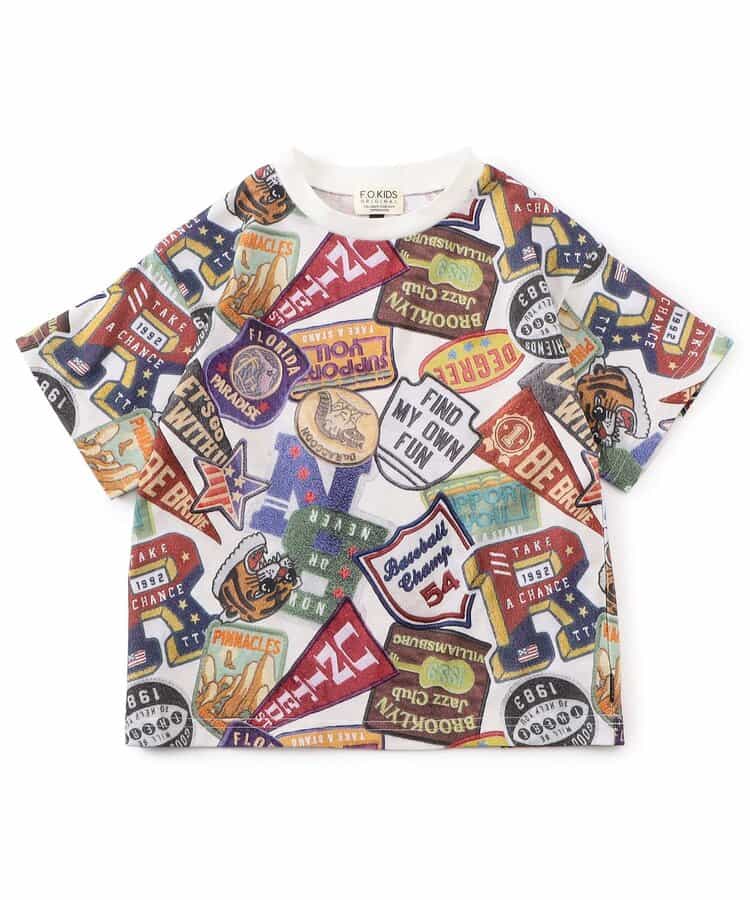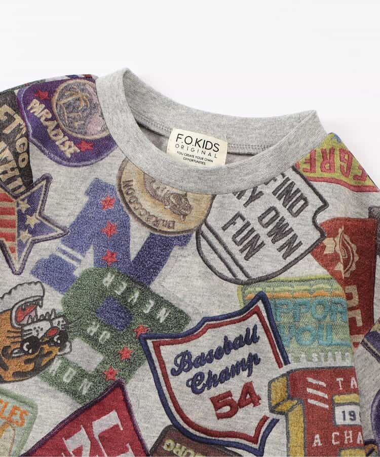 F.O.KIDS(エフオーキッズ)の半袖Tシャツ「ワッペンコラージュ総柄Tシャツ」で、アメカジテイストにユーズド感を加えた風合いあるデイリーカジュアルスタイルを楽しもう!アメカジテイストの子供服・ベビー服ならF.O.KIDSにおまかせ!