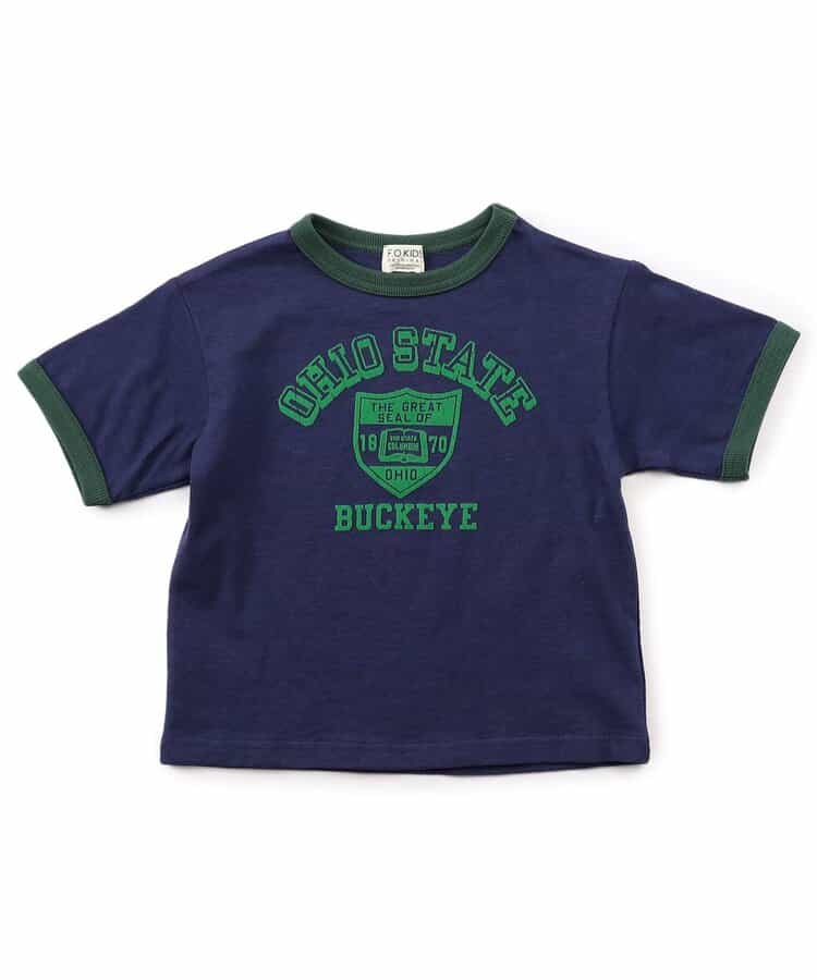 F.O.KIDS(エフオーキッズ)の半袖Tシャツ「カレッジロゴリンガーTシャツ」で、アメカジテイストにユーズド感を加えた風合いあるデイリーカジュアルスタイルを楽しもう!アメカジテイストの子供服・ベビー服ならF.O.KIDSにおまかせ!