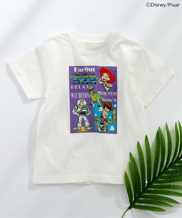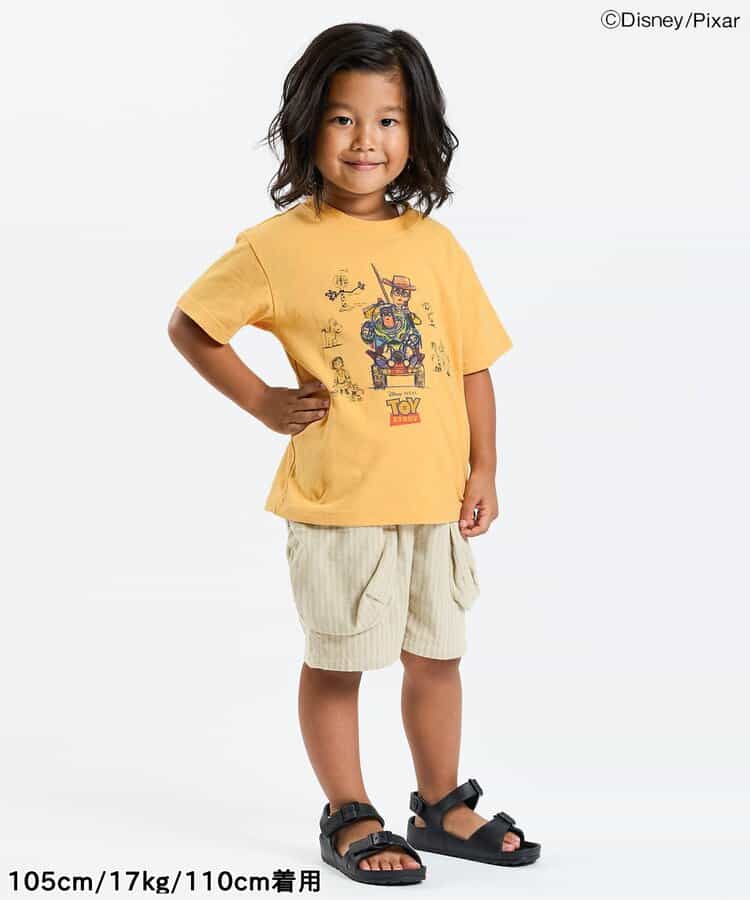 「ウッディ」や「バズ」たち、『トイ・ストーリー』の仲間たちがデザインされた、ワクワクが詰まったTシャツ!オフホワイトは、「バズ」や「ジェシー」、「リトル・グリーン・メン」たちがポスター風に並んだ、カラフルでにぎやかな一枚。イエローは、作品の企画制作時に描かれた貴重なドローイングを使用した、アート感たっぷりのデザイン。「ウッディ」と「バズ」の手書きのドローイングが、物語の原点を感じさせてくれます。背中には『トイ・ストーリー』のロゴをさりげなくオン。お気に入りの仲間たちといっしょに、今日はどんなお話がはじまるかな?
